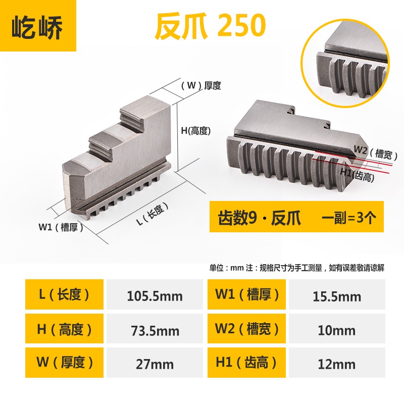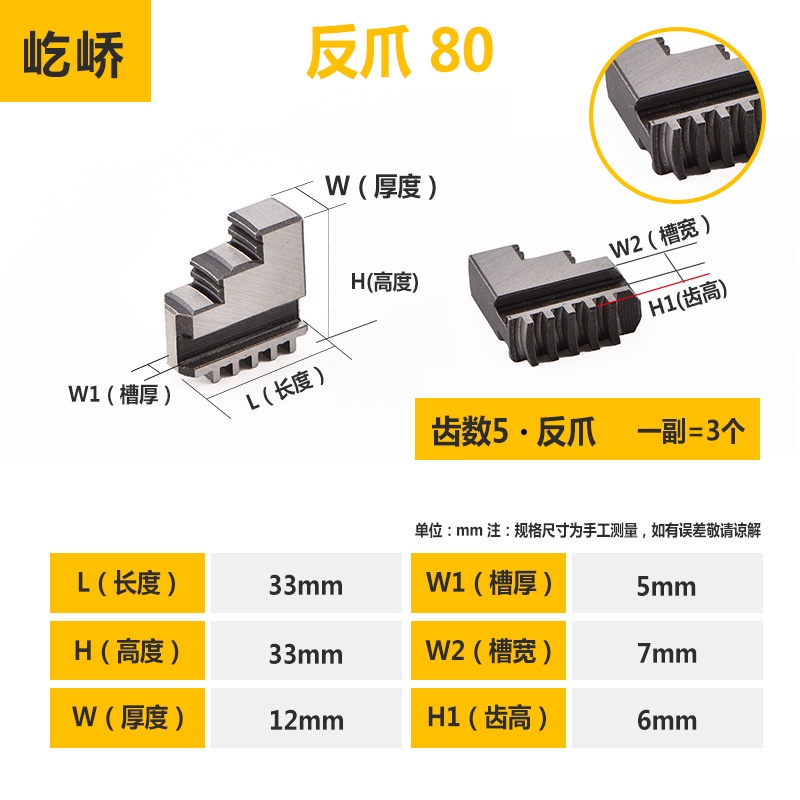 Manual Claw Three Jaw Chuck Claws Manual Chuck Jaws Is Claw Anti-Claw 80 100 125 160 200 250 320 400