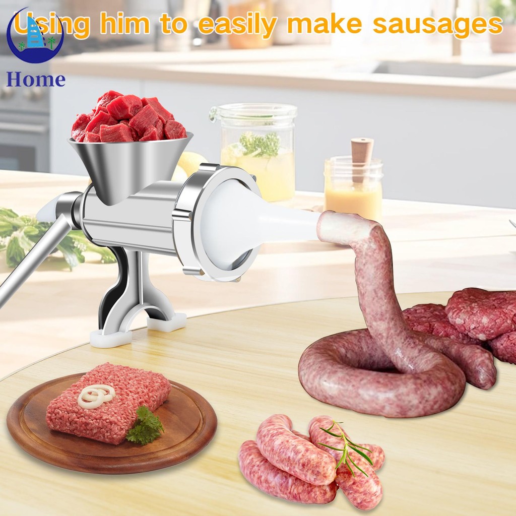 Manual Meat Grinder with Handle Meat Crank Rustproof Meat Grinder Sausage Maker Table Mount Pork Mincer with 3 Sausage Maker Tube Multifunctional Meat Grinding Machine SHOPTKC8757