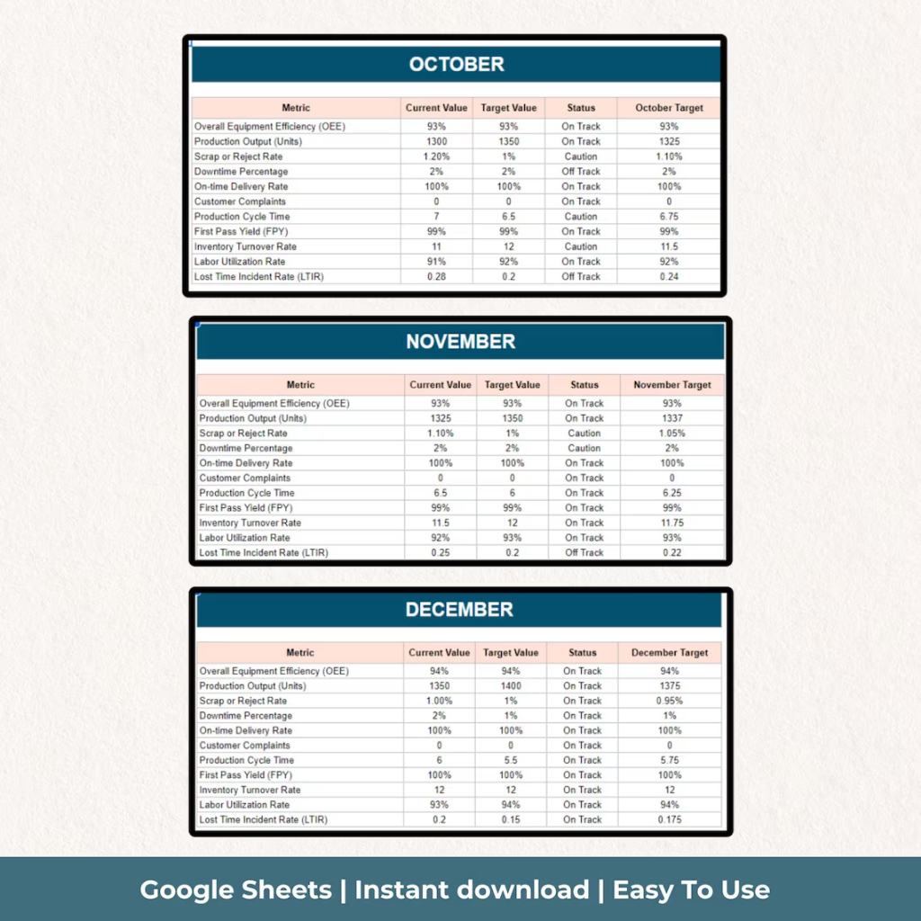 Manufacturing KPI Dashboard Excel Template, Manufacturing Template, Production Dashboard, KPI spreadsheets, Analytics