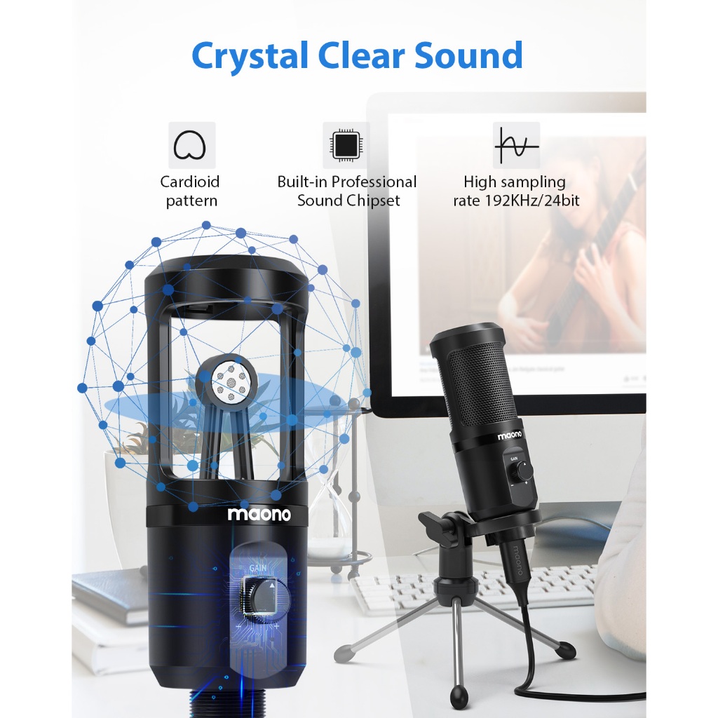 Maono PM461TR GEN2 USB Mikrofon Cardioid Condenser Mic dengan Mic Gain untuk PC/Komputer riba