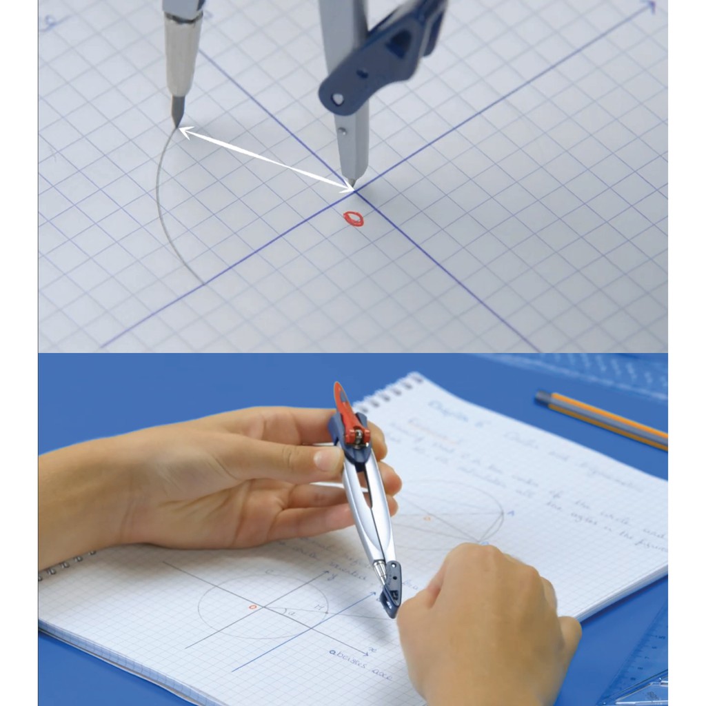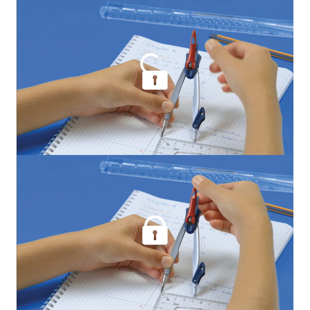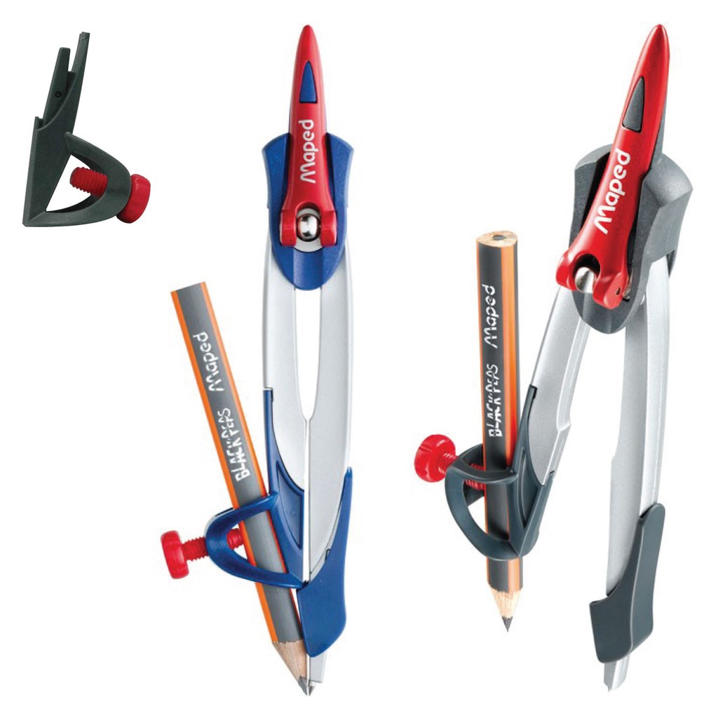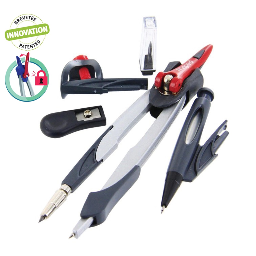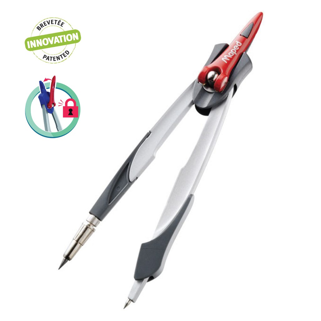 Maped Stop System Compass 5 Piece Set for Math & Geometry Drawing with Locking System for Perfect Drawing