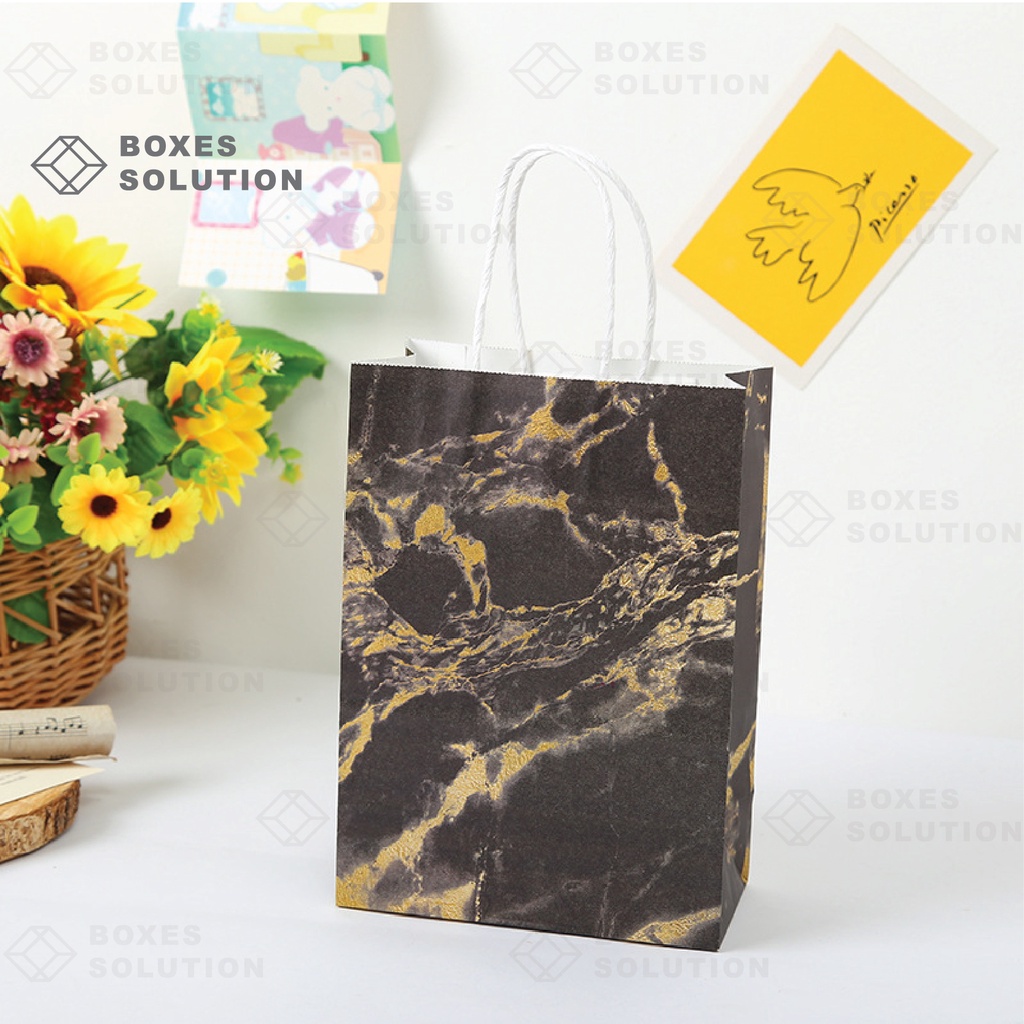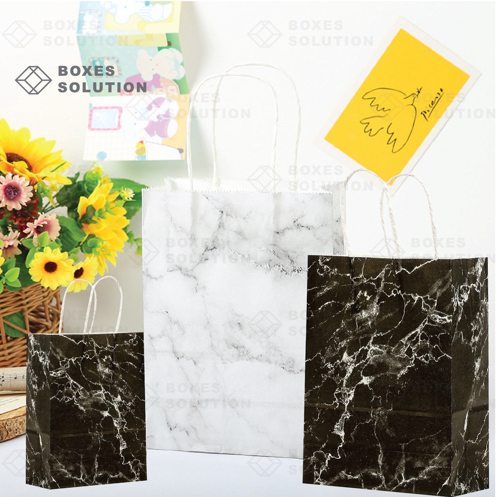 Marble Shopping Bag Rich And Colorful Printing Ribbon Paper Bag Marbling Printing Gift Paper Bag With Random Ribbon