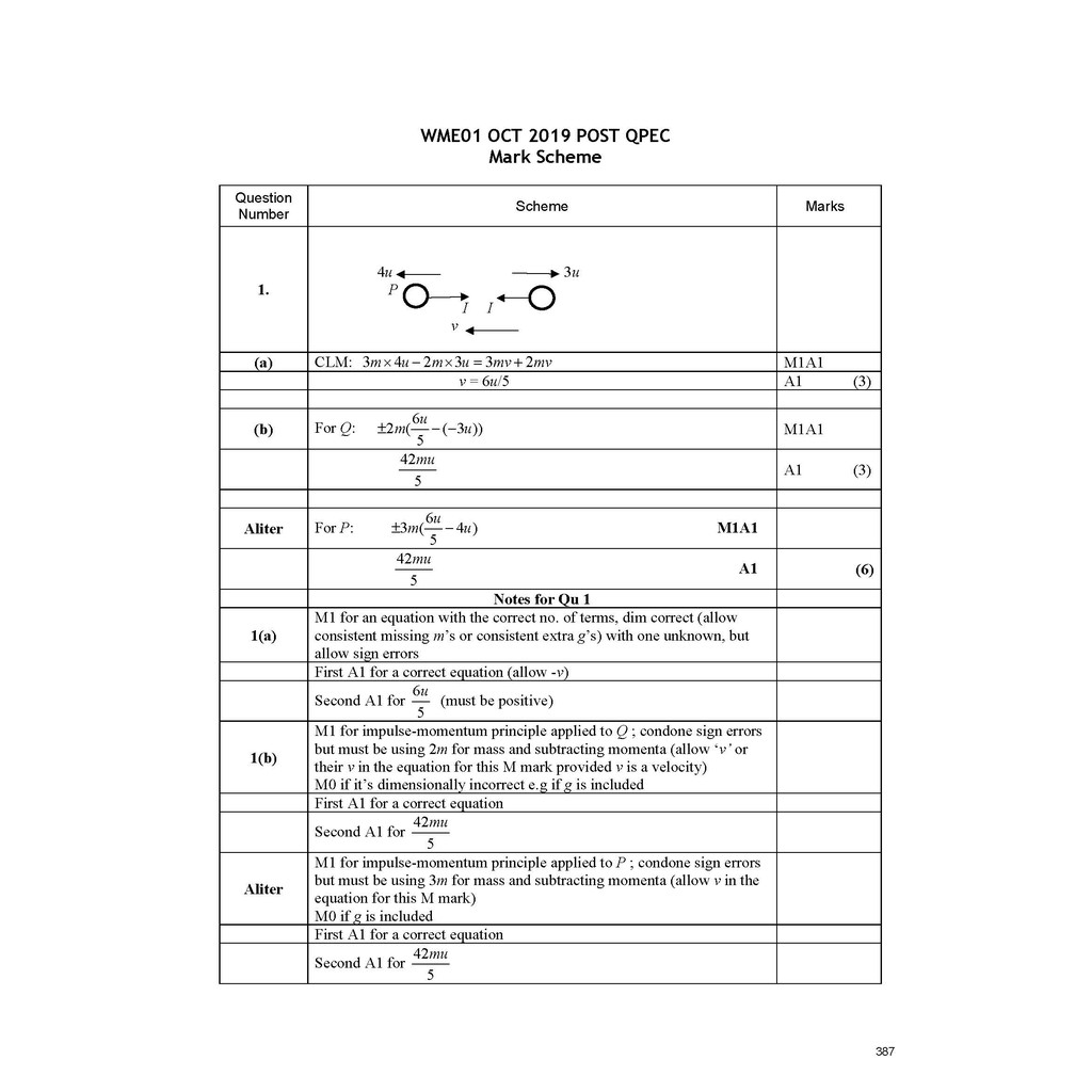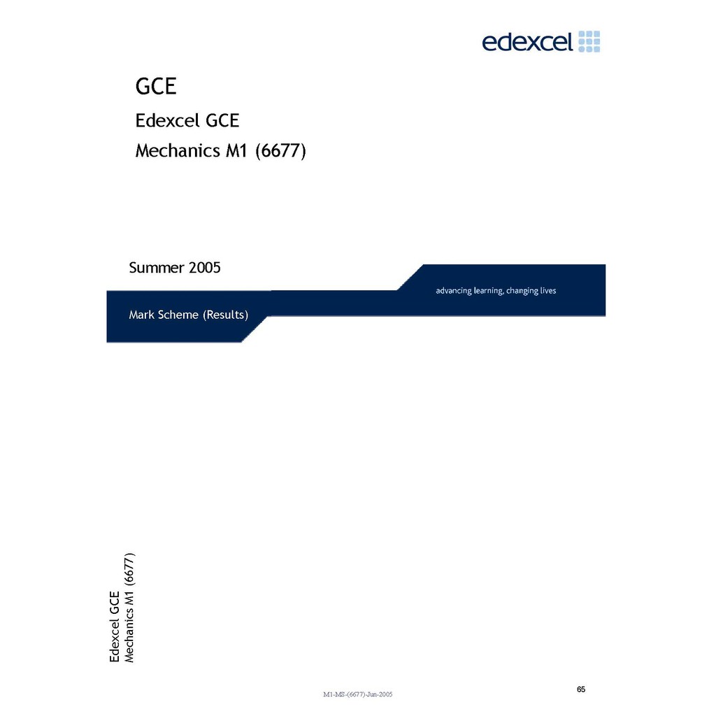 Mark Scheme for A Level EDEXCEL Mechanics (M1), Past Papers - Student Book - [Year 2001-2020] UPDATED with Jan 2020