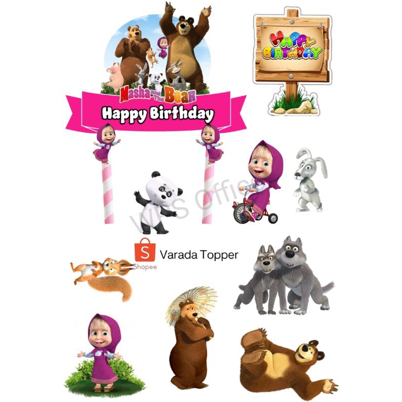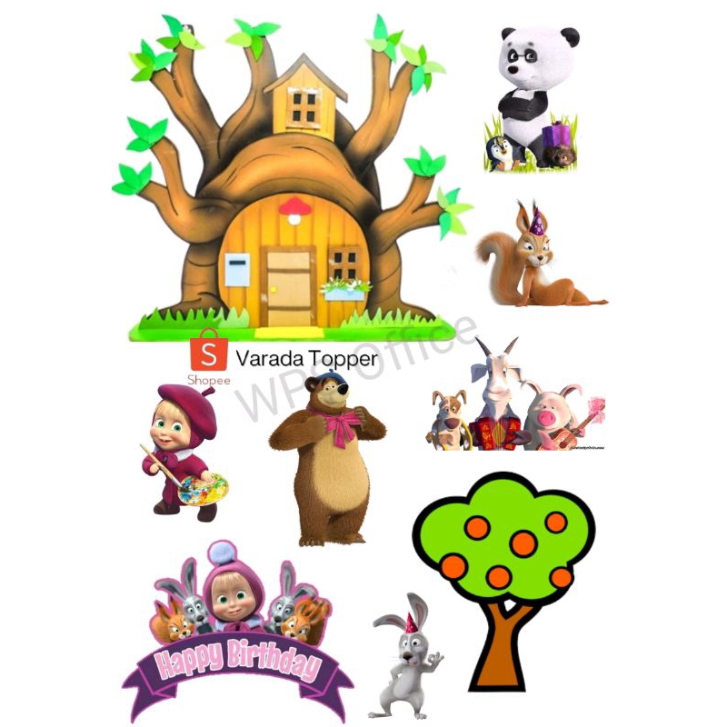 MARSHA AND THE BEAR Theme Cake Topper Free Request/ Name MARSHA AND THE BEAR Birthday Cake Decoration