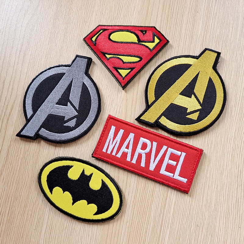 Marvel LOGO Embroidery Velcro A-Character Patch Superman Batman Tactical Morale Cloth Sticker Hook Ring Buckle American Movie Superhero Armband Fun
