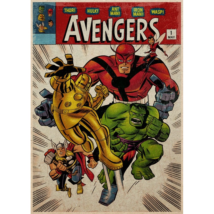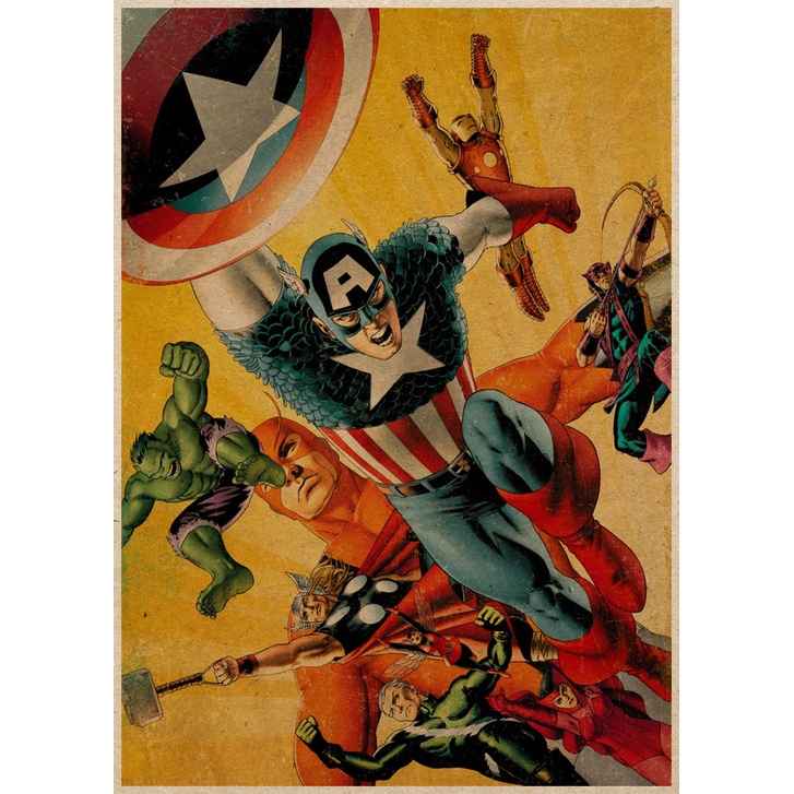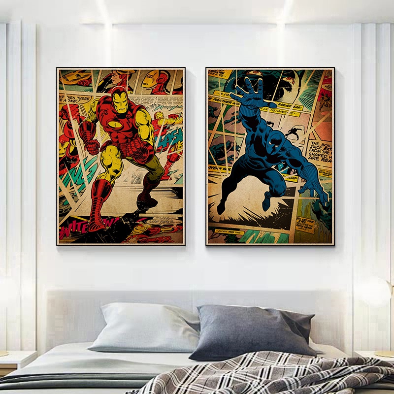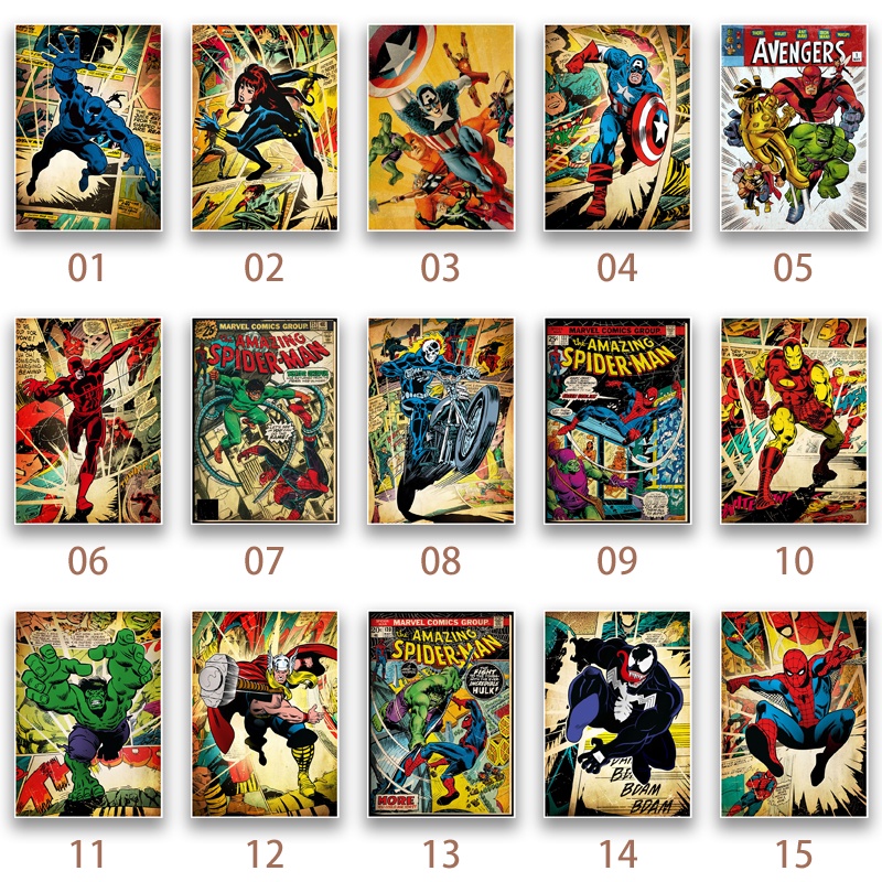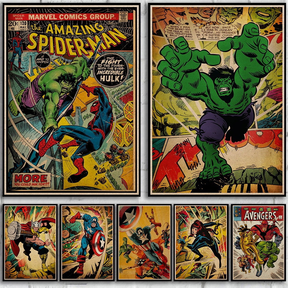 Marvel Poster Collection Spider Man Hulk Captain America High Quality Kraft Paper Retro Decoration Poster