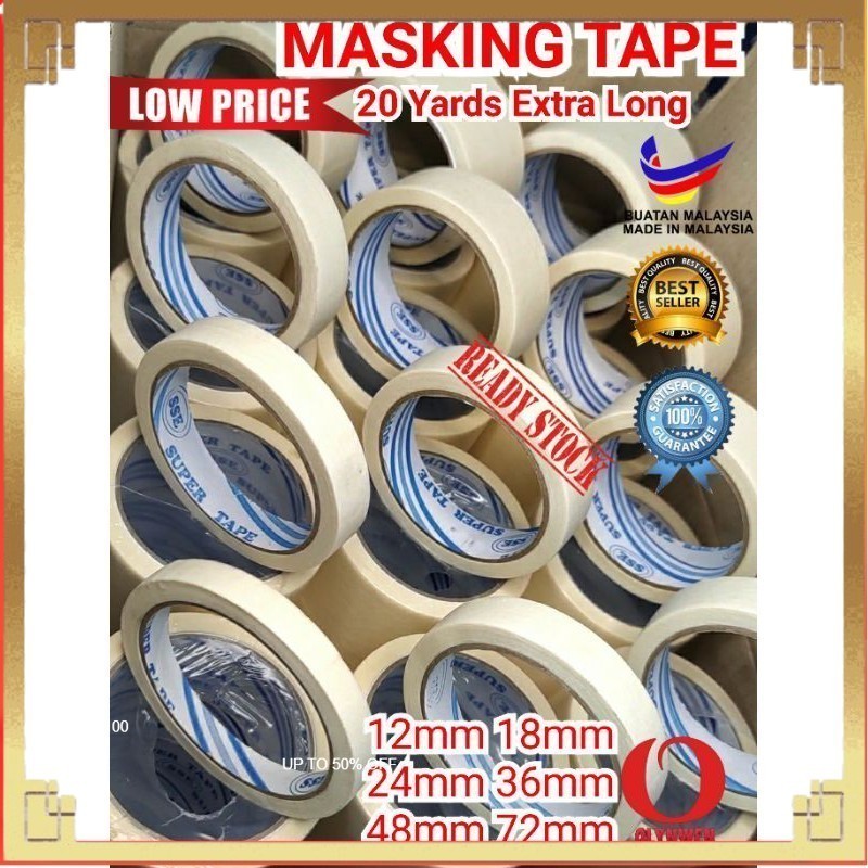Masking Tape Paper Painting tape Premium Industry grade quality 12mm 18mm 24mm 36mm 48mm 72mm READY STOCK Extra Long
