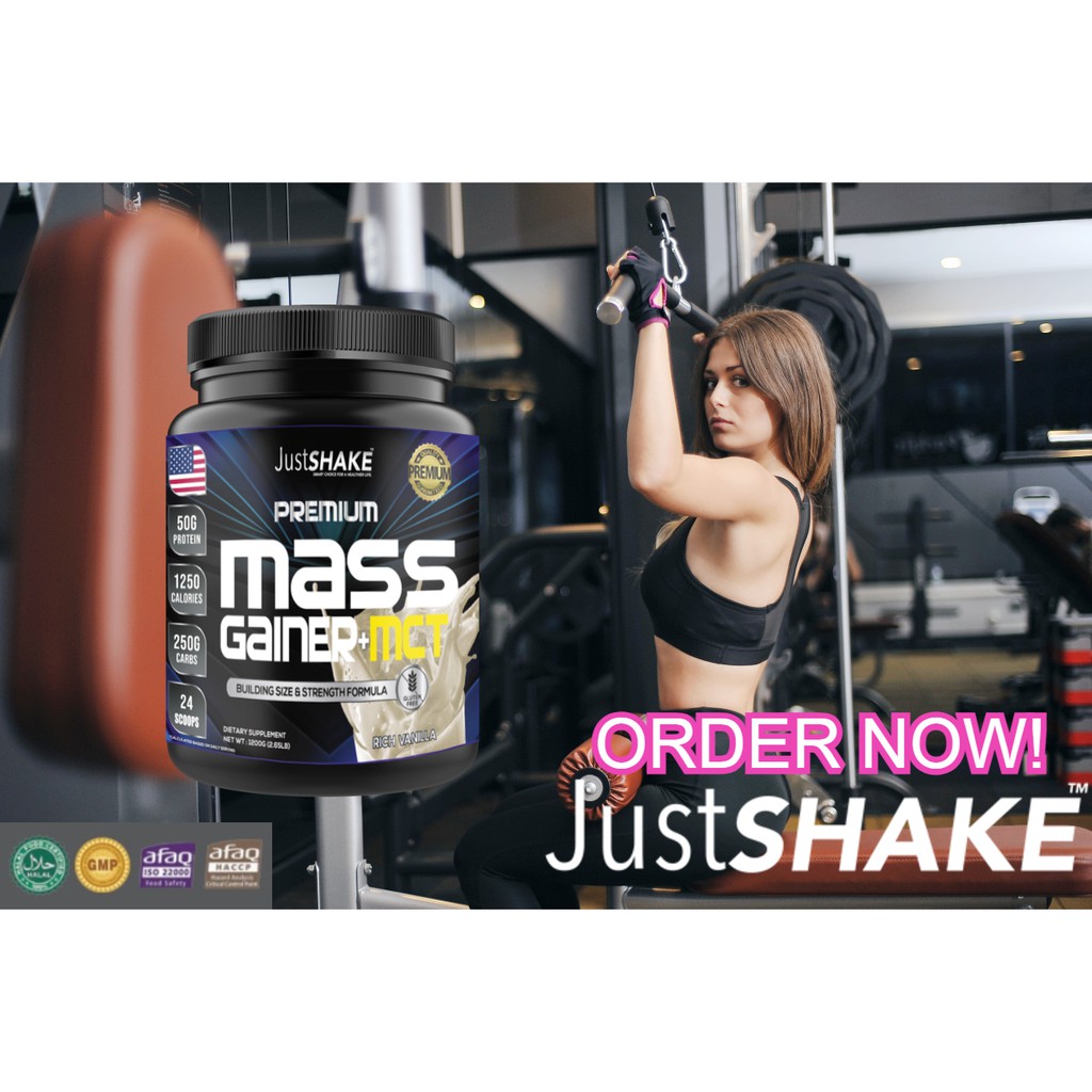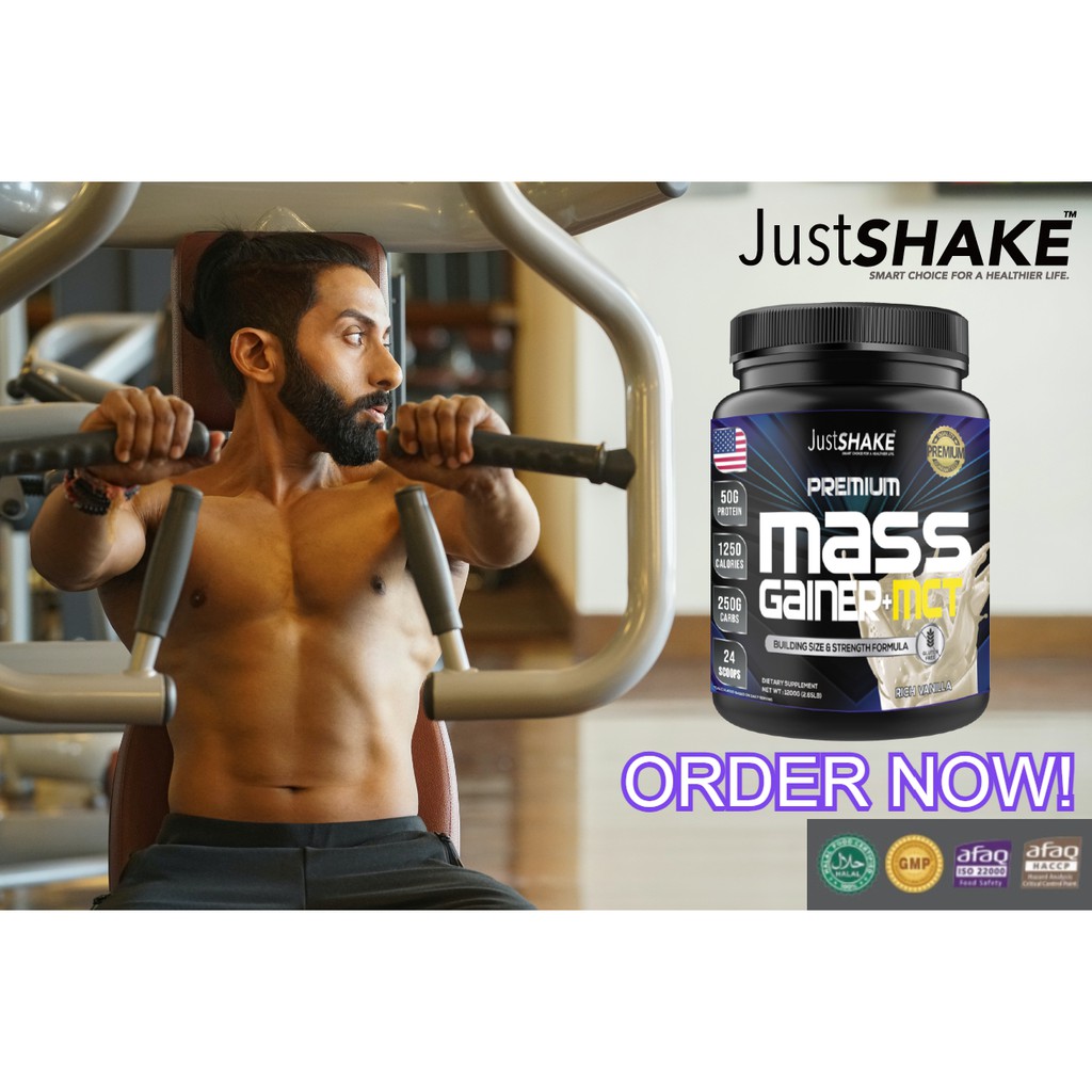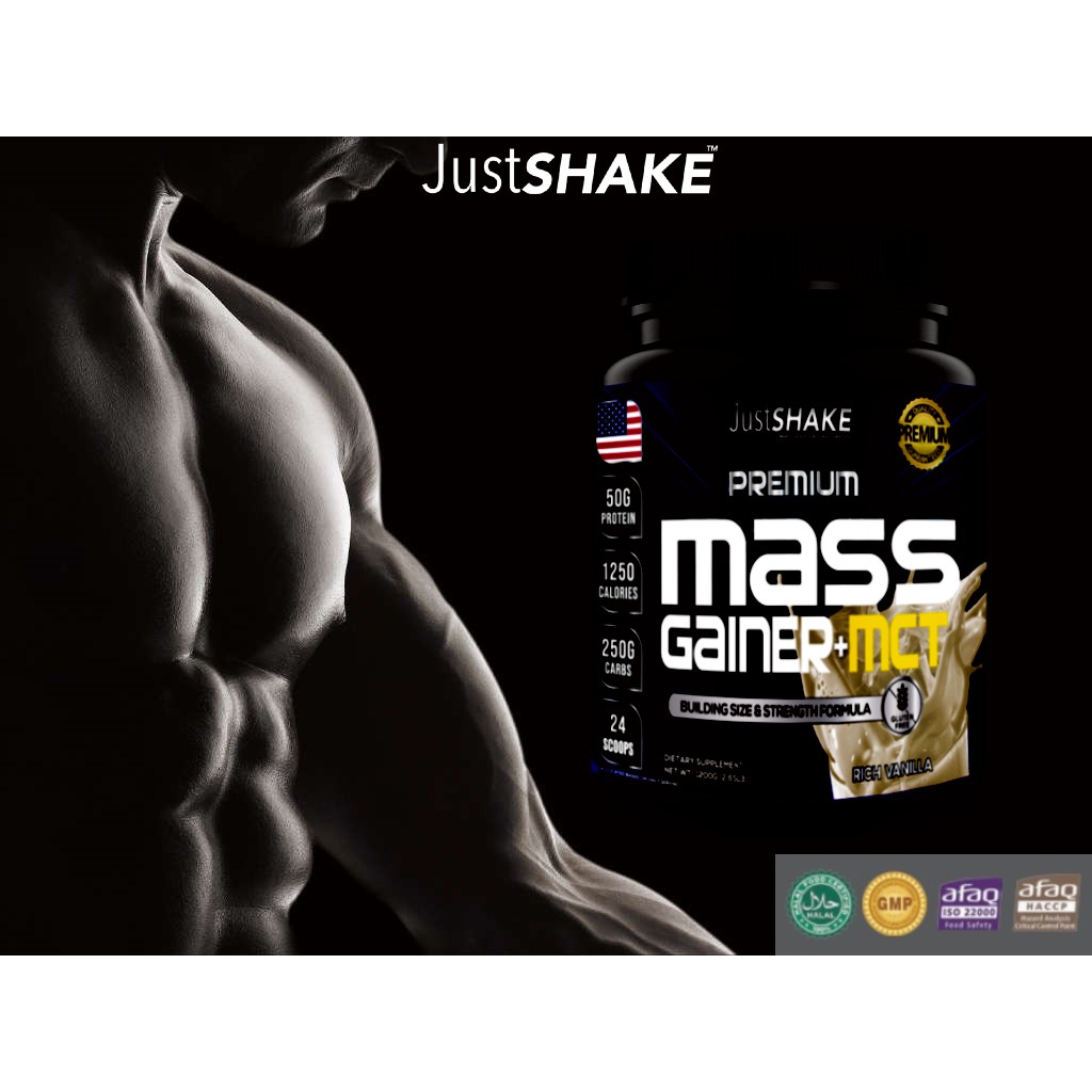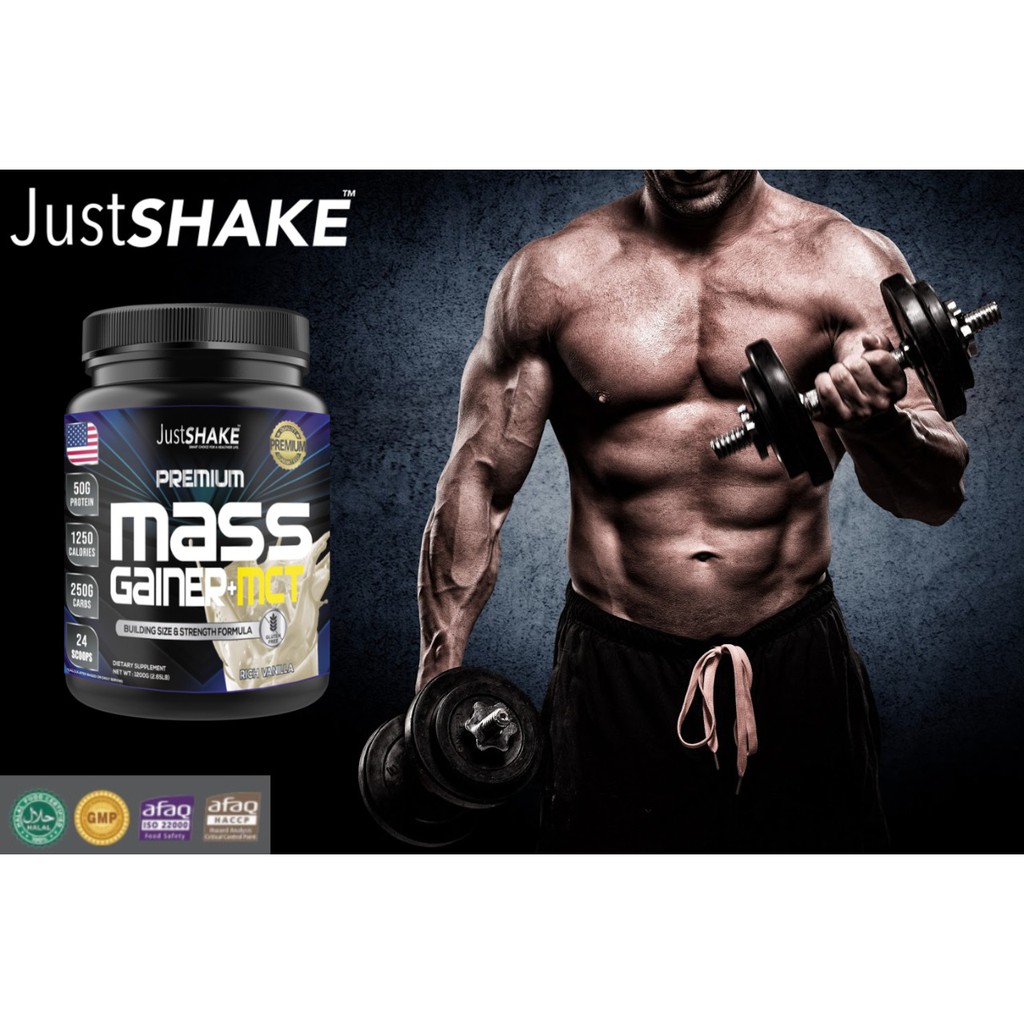 Mass GAINER+MCT PREMIUM JUSTSHAKE/MEN'S AND WOMEN'S MUSCLE SHAKES MILK (1200gr)