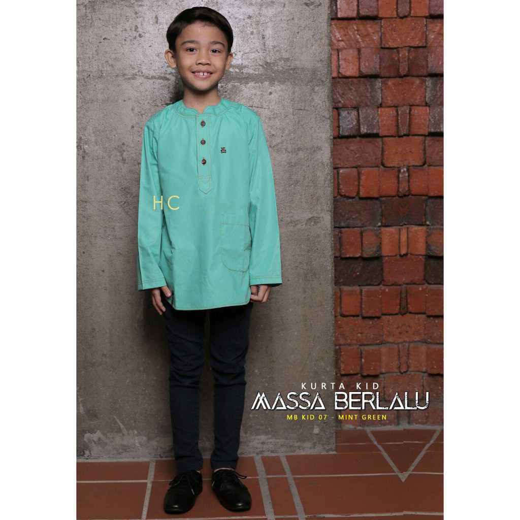 Kurta budak lelaki slim fit, berkolar, lengan panjang, cotton, mint green