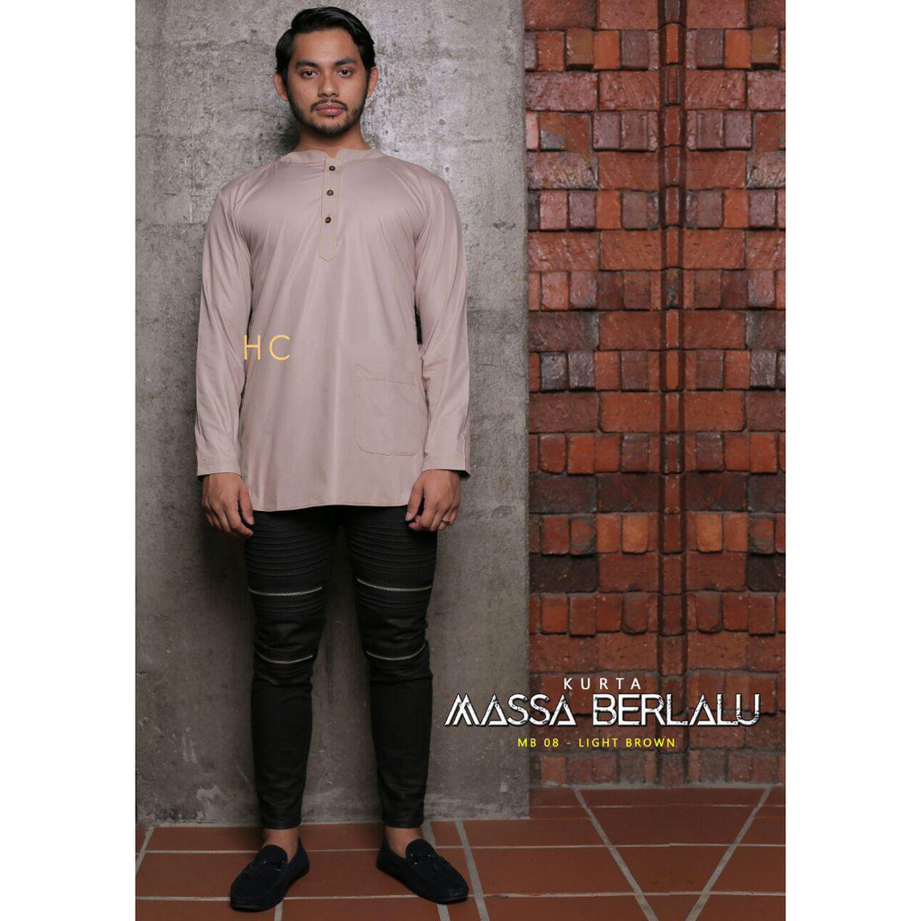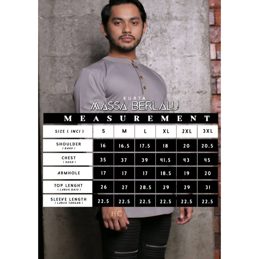 Kurta Massa - Kurta lelaki dewasa slim fit, berkolar, lengan panjang, cotton, sedondon ayah anak