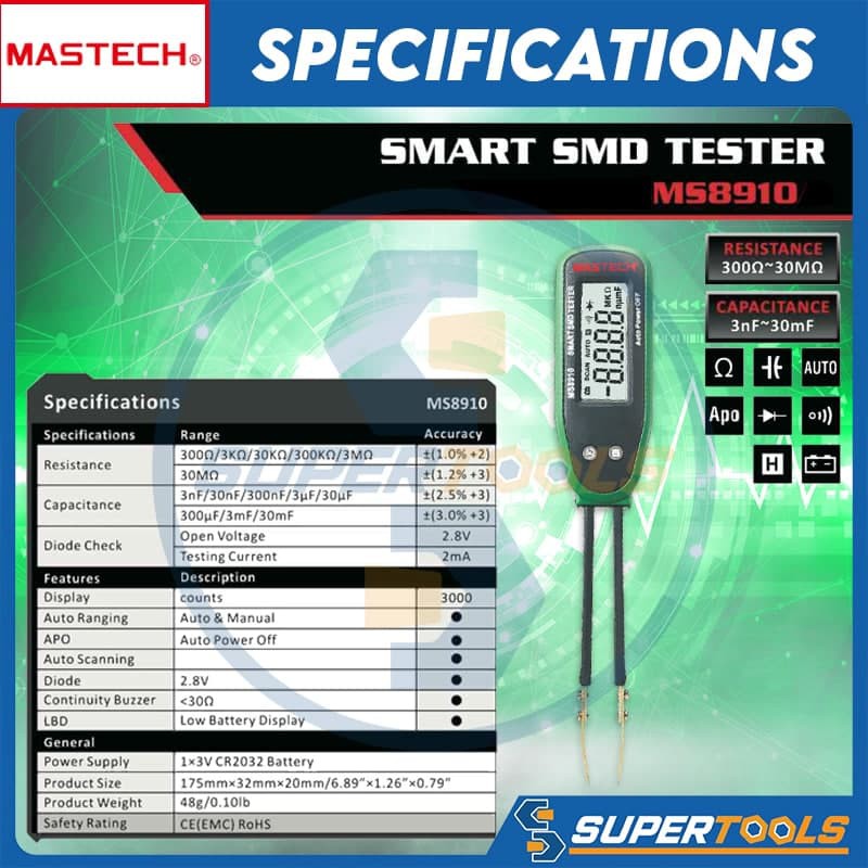 Mastech MS8910 Smart SMD Resistance Capacitance Diode Surface Mounting Device Digital Multimeter Continuity 3000 Counts
