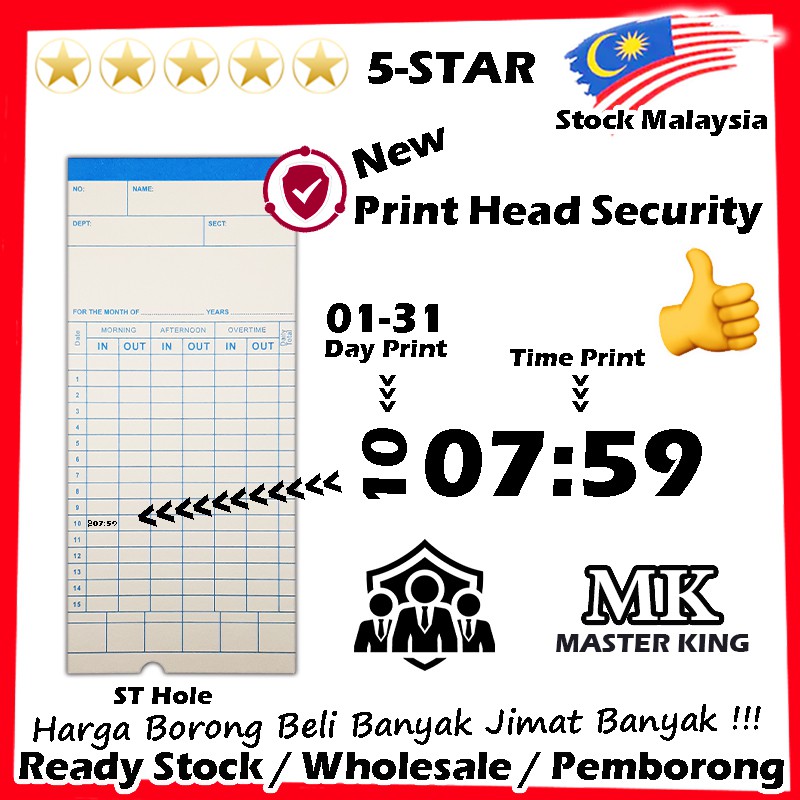 Master King Time Recorder Punch Card Machine Standard Punch Card Mesin Punch Card PCM-996 / PCM-886