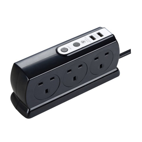 Masterplug 6 Gang 2 USB (3.1mAh) Switch Surge Protector 2 Meter Extension Leads Glossy Black SRGDSU62PB-MPA