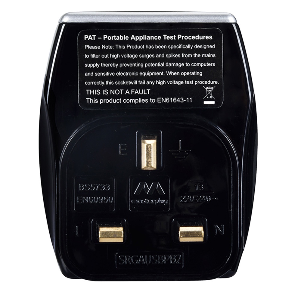 Masterplug Surge Protector 1 Gang 2 USB 3.1A Power Adaptor Safety Shuttered Socket High Gloss Black (SRGAUSBPB3-MPA)