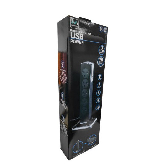 Masterplug Surge Protector 10 Gang 2 USB 2 Meter Extension Leads Tower (SRGTOWSU102PB-MPA)