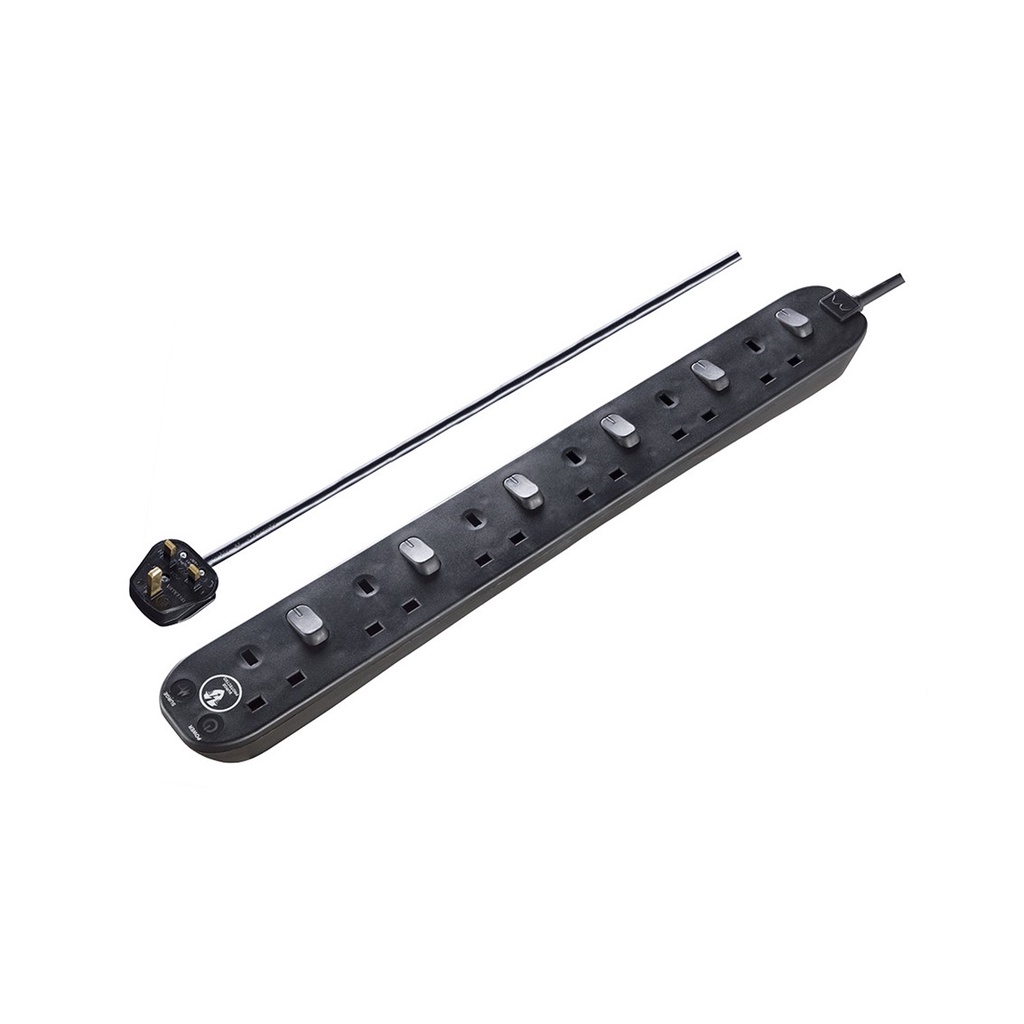 Masterplug Surge Protector 6 Gang 2 Meter Switched Extension Leads (SWSRG62NB)