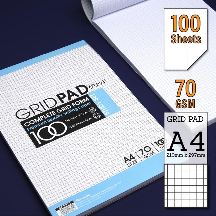 Masterprint A4 Exam Note Pad - Dot/Grid/Blank/Single Line 100 Sheets 70gsm Paper Stationery White