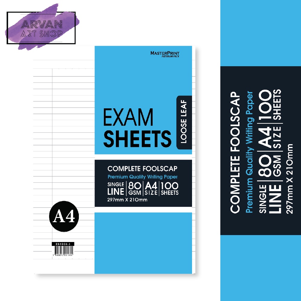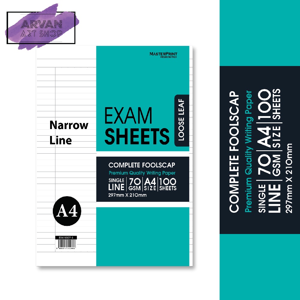 Masterprint A4 Foolscap Premium Quality Paper Exam Sheets ( 100's Single Line / Narrow Line / Exam Sheets / Textpad )