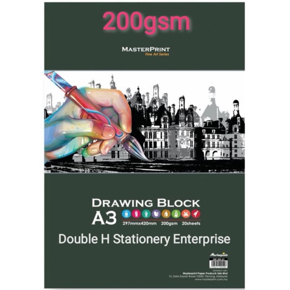 Masterprint Art Drawing Paper Block (A3 Size - 20 Sheets ) 135GSM / 165GSM / 200GSM