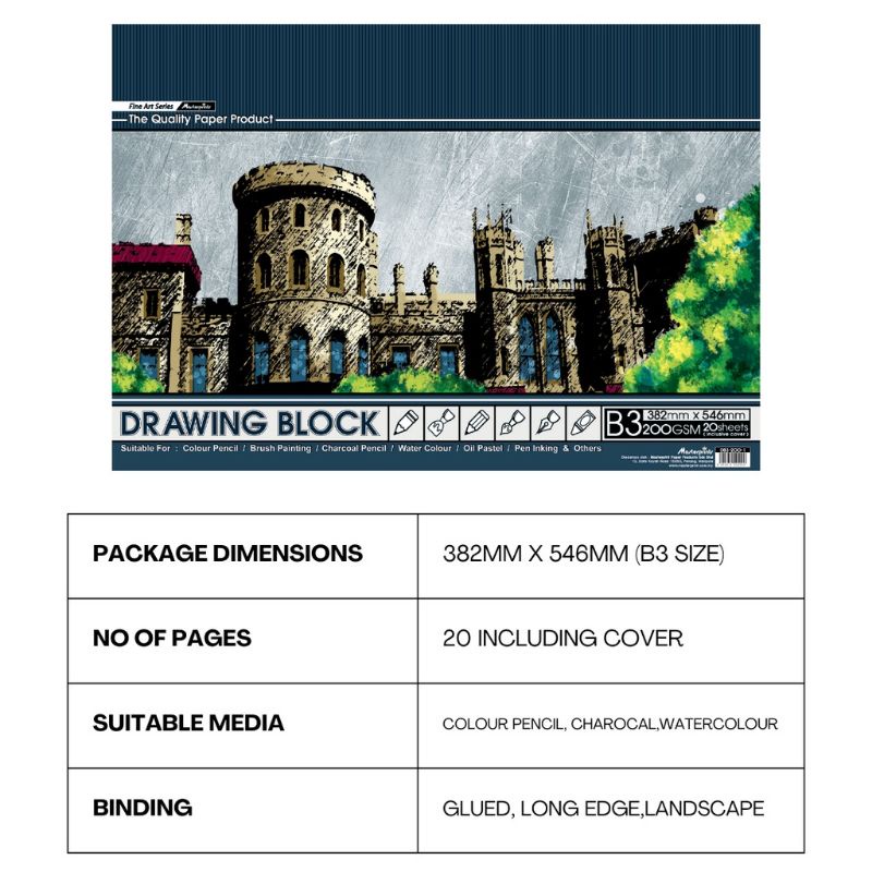 Masterprint Drawing Block B3 200gsm 18 sheets / Buku Lukisan Saiz B3