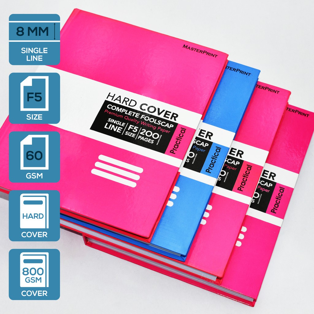 Masterprint Hard Cover Quarto Note Book F5 Size (Single Line) 120 // 200 // 300 // 400 // 500 Pages Hard Cover