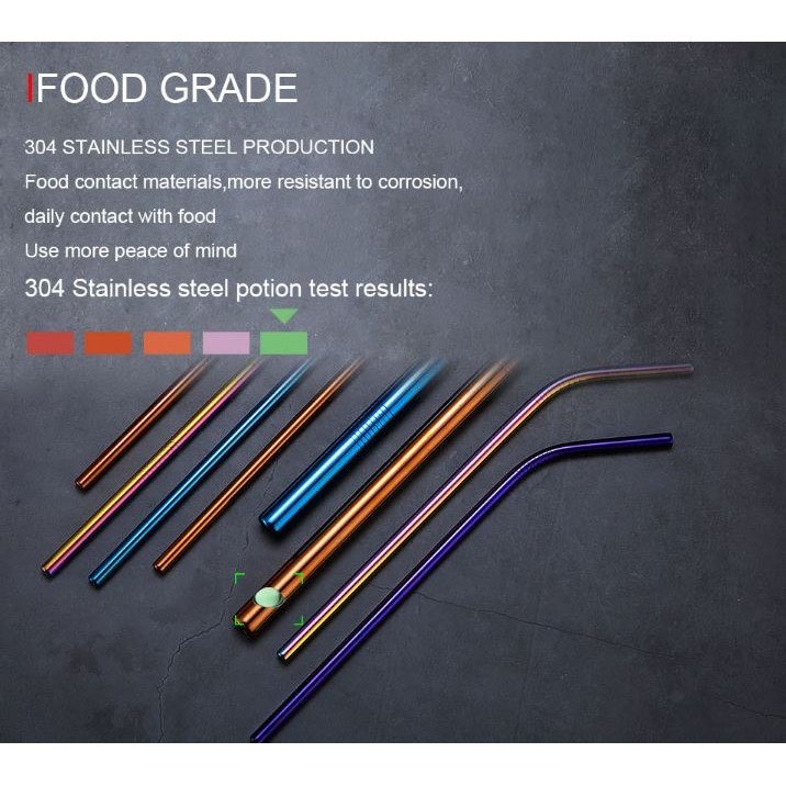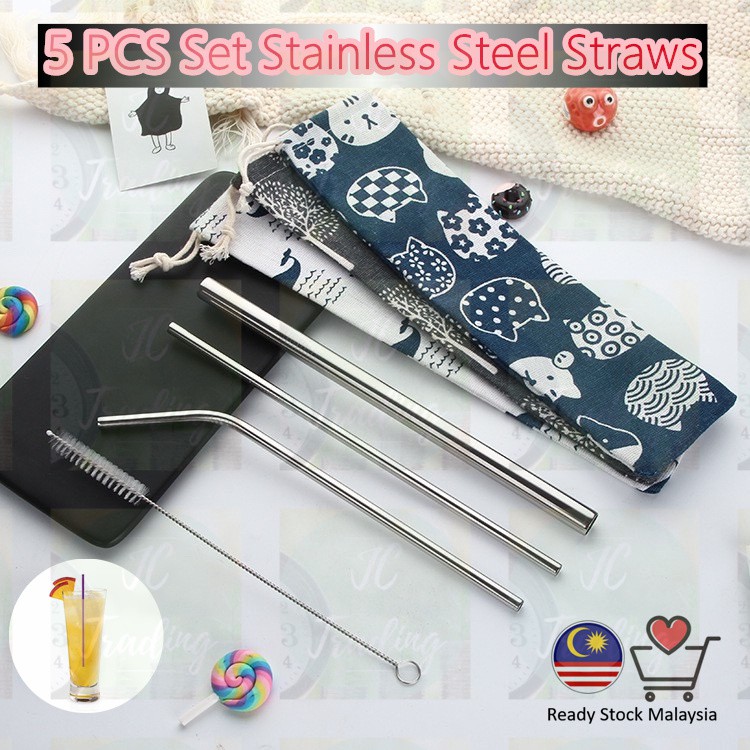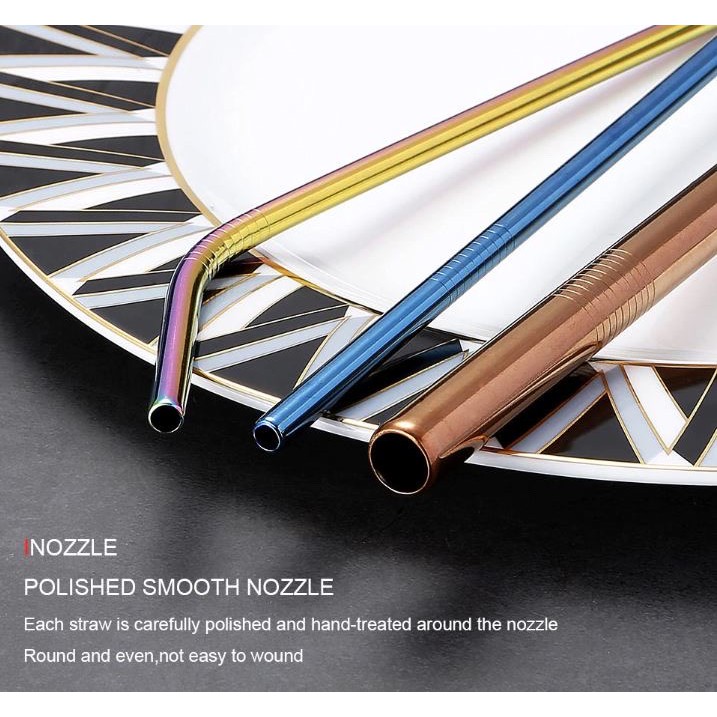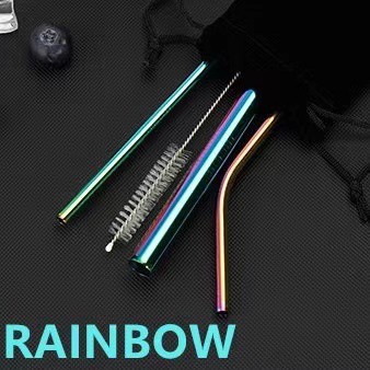 5 Pcs High Quality Stainless Steel Straws 7 Colors Reusable Washable Straight Curve Metal Drinking Straw