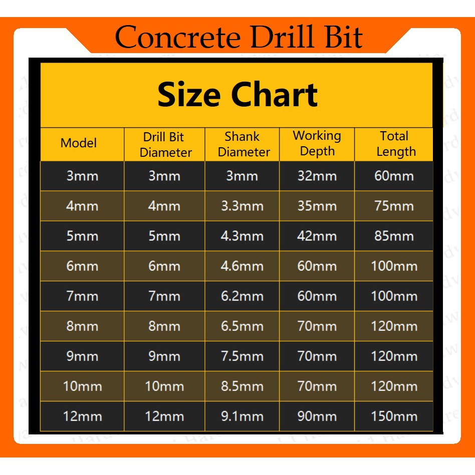 Mata Bor Tebuk Batu Dinding Mata Gerudi Simen Impact Drill Bit Bits Set for Drilling Concrete Cement Brick Masonry Wall