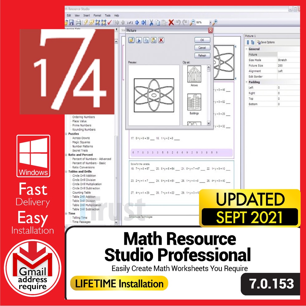 Math Resource Studio Professional 7.0.166 - Easily Create Math Worksheets You Require [WINDOWS x64] - Digital Download