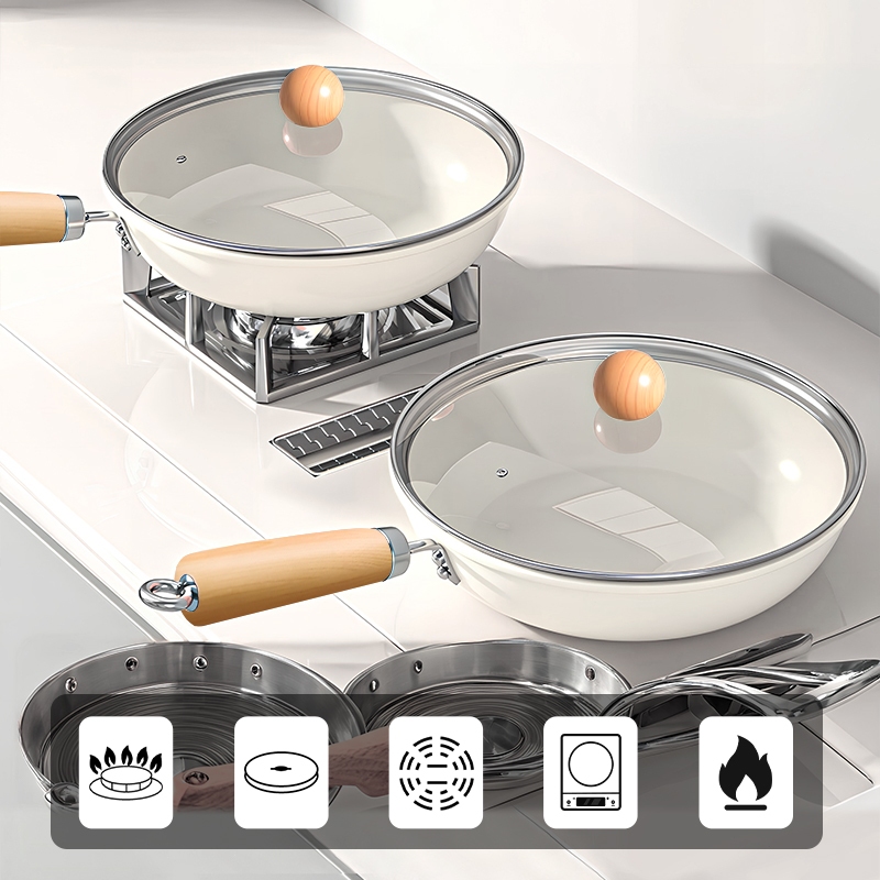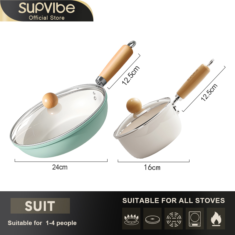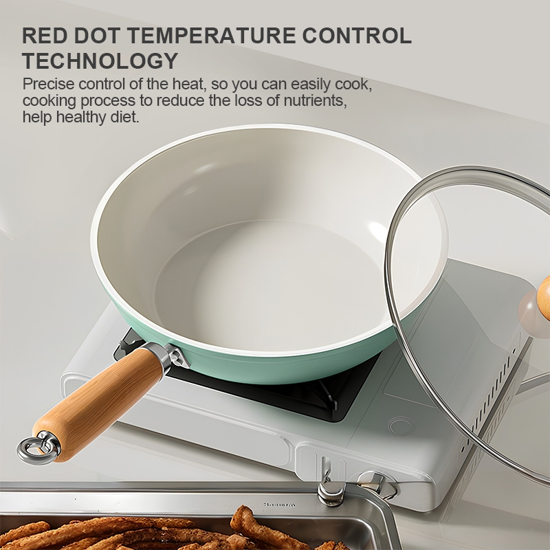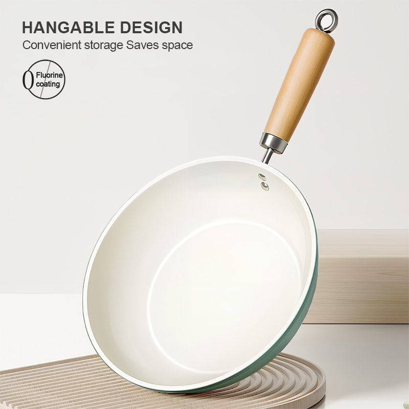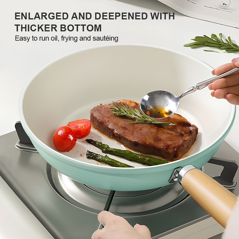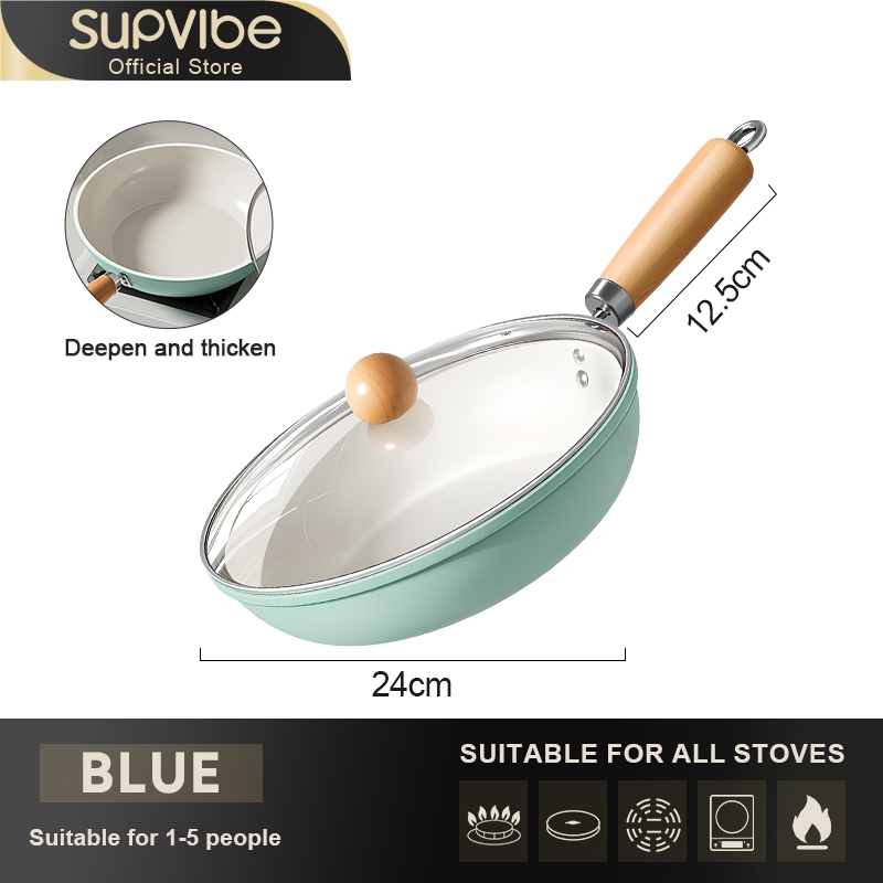SUPVIBE 24CM Ceramic Pan Nonstick Pan Ceramic Wok Non-Stick Coating Deep Frying Pan Cookware Suitable Induction