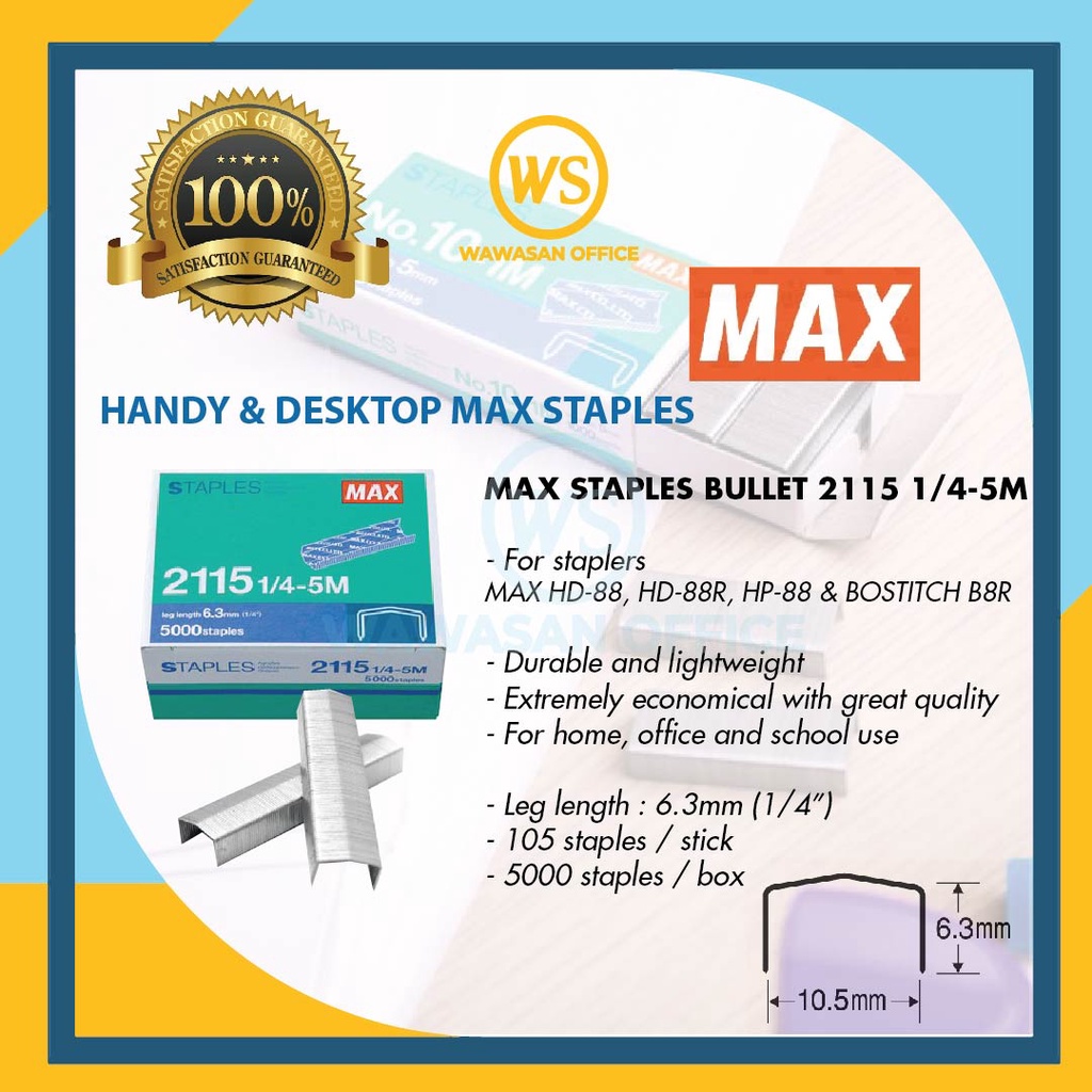 Max 2115 1/4-5M Staples / Max Staples / Staples 2115 / Stapler Bullet / Ubat Stapler / Dawai Kokot (5000 Staples)