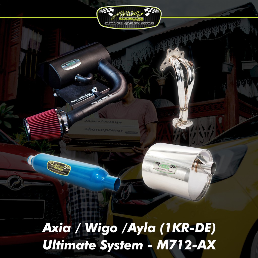 Max Racing Axia Silent M712-AX Ekzos - Muffler, Tabung Tengah Full Set Ultimate System +10hp System 2013 sehingga 2020