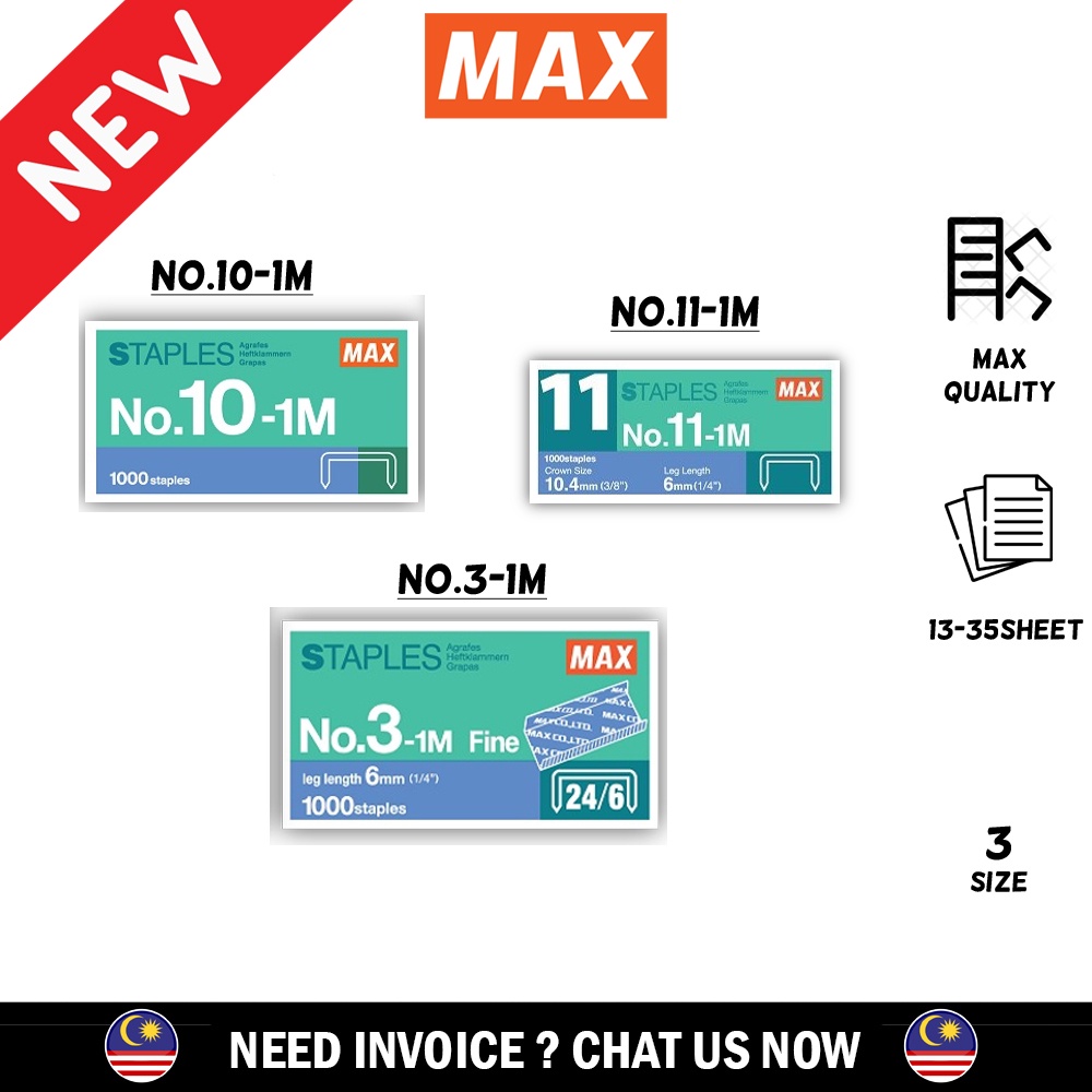 Max Staples No.10-1M/No.3-1M/No.11-1M 1Pcs - 1000 Staples Ubat Stapler/Dawai Kokot Ubat Staples