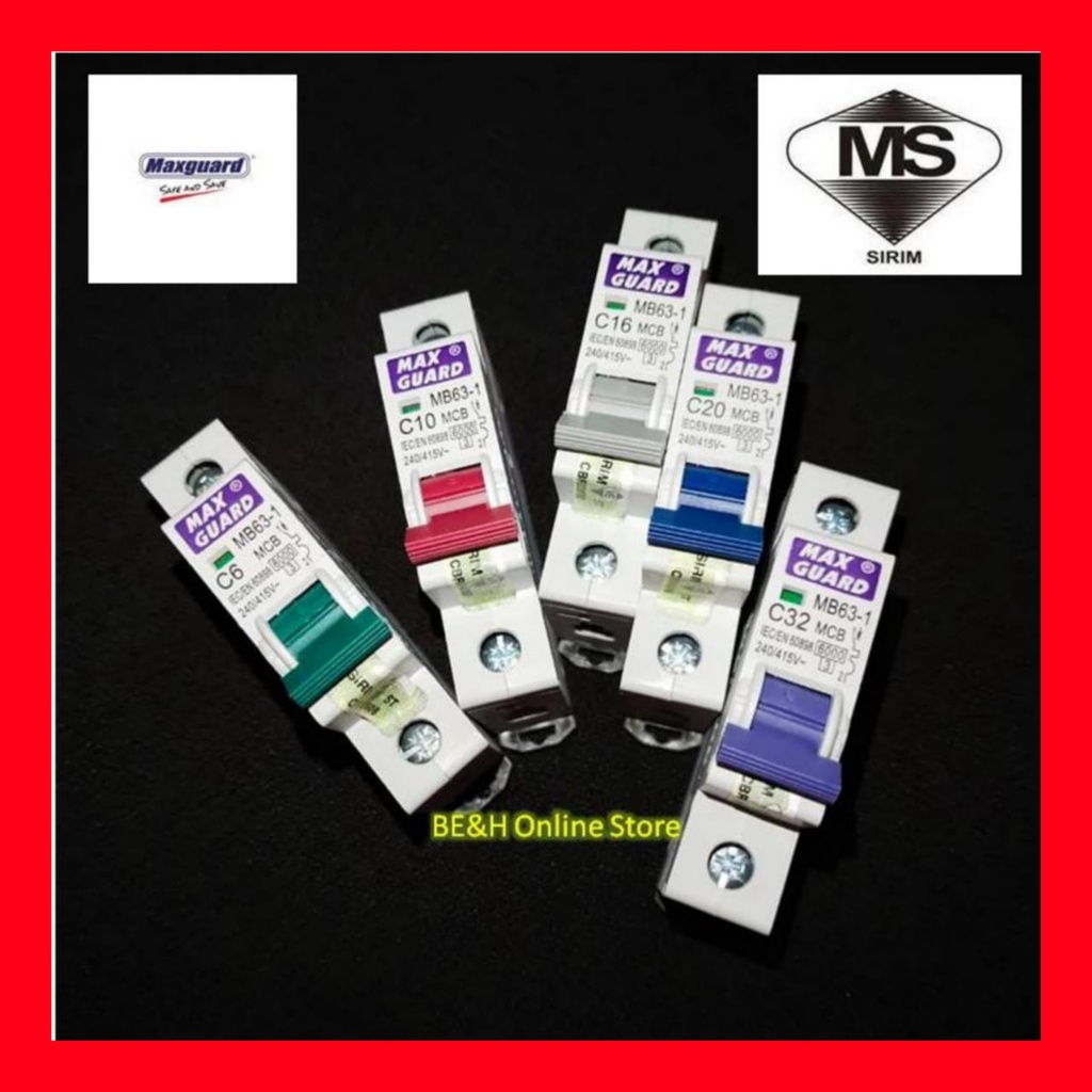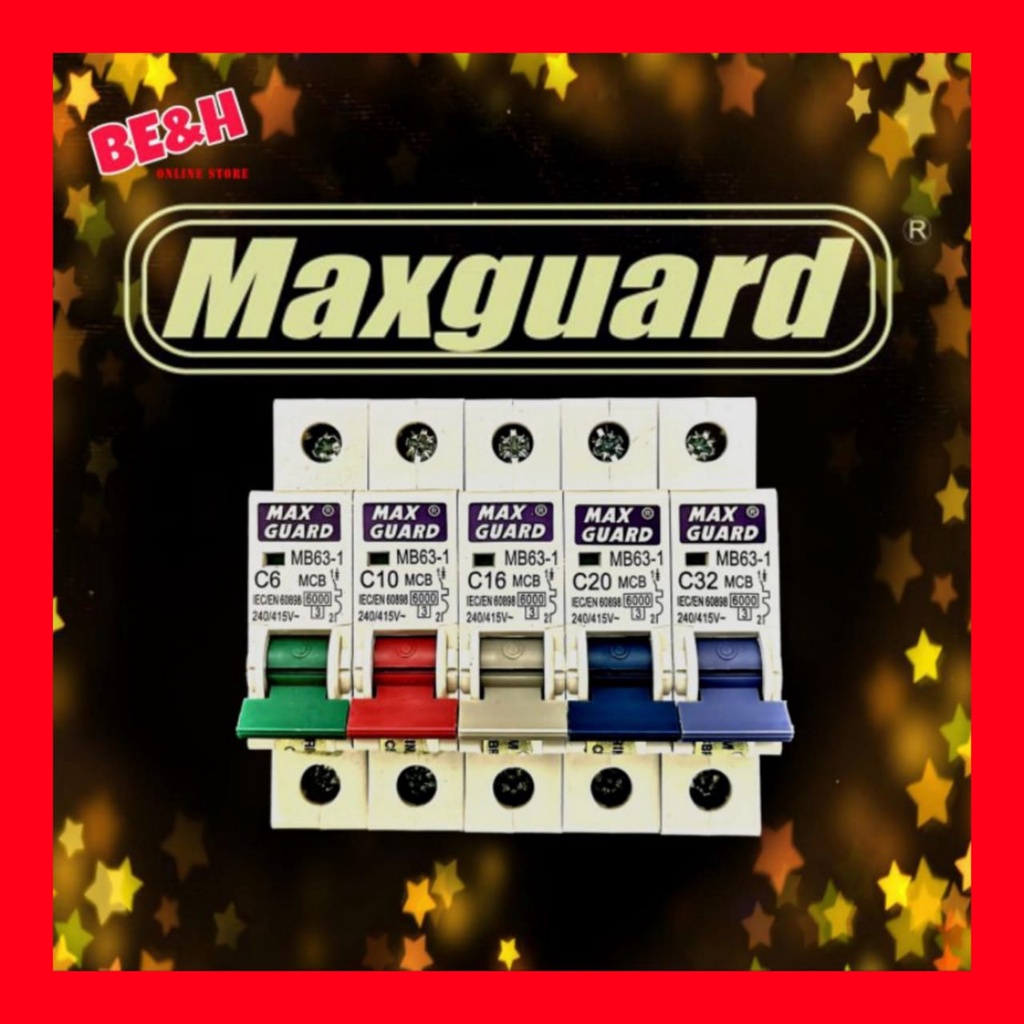 Maxguard 1 pole 1p MCB 6A 10A 16A 20A 32A SIRIM miniature circuit breaker 6000a