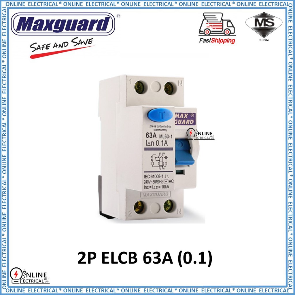 Maxguard 2 Pole ELCB 40A / 63A ( 0.1mA ) / 2 Pole ISOLATOR 40A / 63A