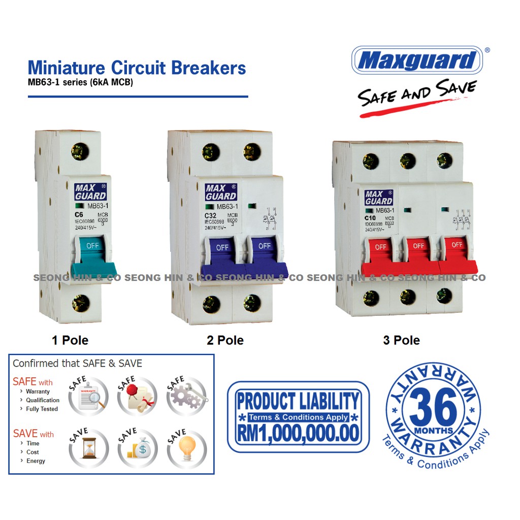 Maxguard GENUINE 1 Pole 6kA Miniature Circuit Breakers (MCB) MCB 6A 10A 16A 20A 32A 40A / 6Amp 10Amp 16Amp 20Amp 32Amp