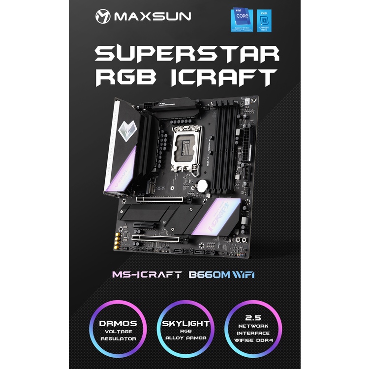 Maxsun MS B660M ICraft wifi motherboard (Intel, motherboard/mobo, aRGB pin)
