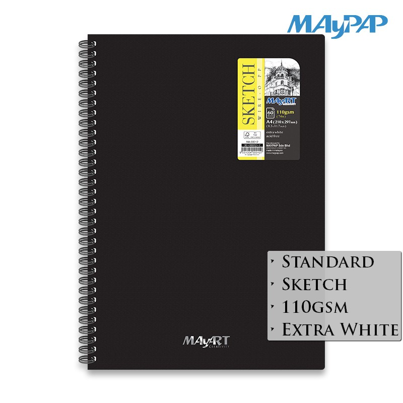 MayArt Wire-O PP Cover Sketch Drawing Book 110gsm 60shts A3 / A4 / A5 Buku Lukis Buku Nota