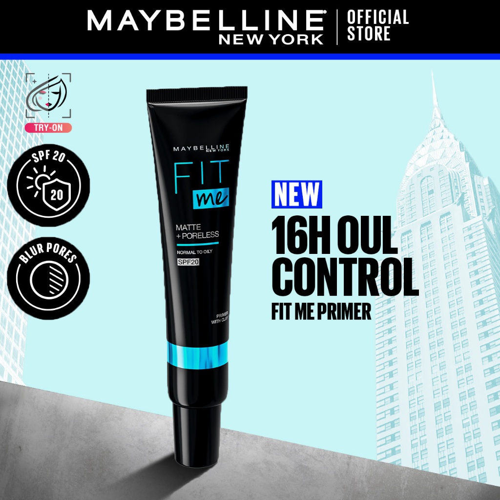 Maybelline Fit Me Matte + Poreless Primer – SPF 20, 16H Longwear, Blurs Pores, Controls Oil & Shine. Lightweight, Matte