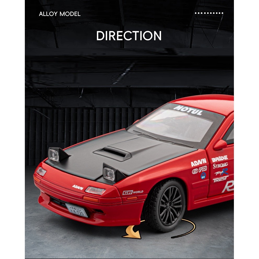 Mazda RX-7 Ready Stock Malaysia 1:32 Mazda RX7 Diecast Alloy Car Model Metal Body Collector's Edition with Light & Sound
