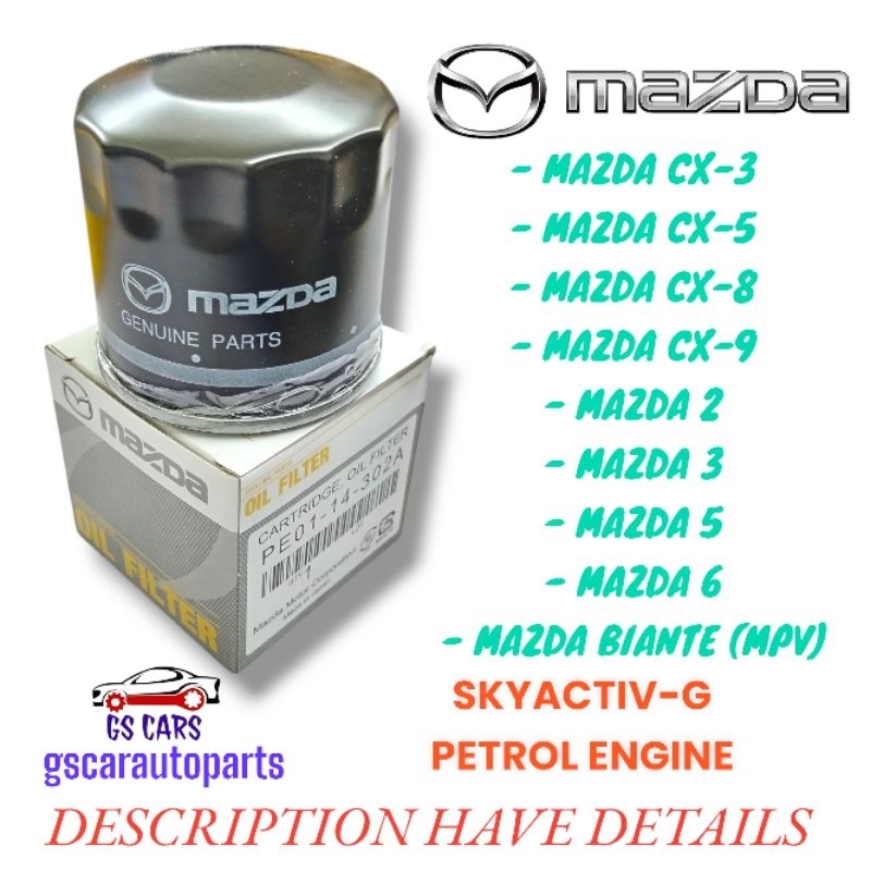 Mazda skyactiv petrol engine oil filter 2/3/5/6/cx3/cx5/cx8/cx9/biante skyactive pe01-14-302a/302b penapis minyak enjin