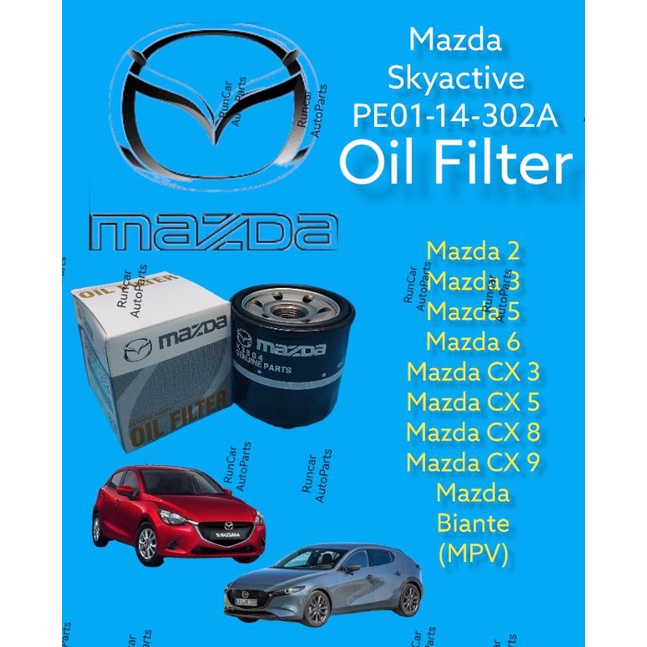 Mazda skyactive engine oil filter 2/3/5/6/cx3/cx5/cx8/cx9/biante/ skyactive petrol engine pe01-14-302a / 302b