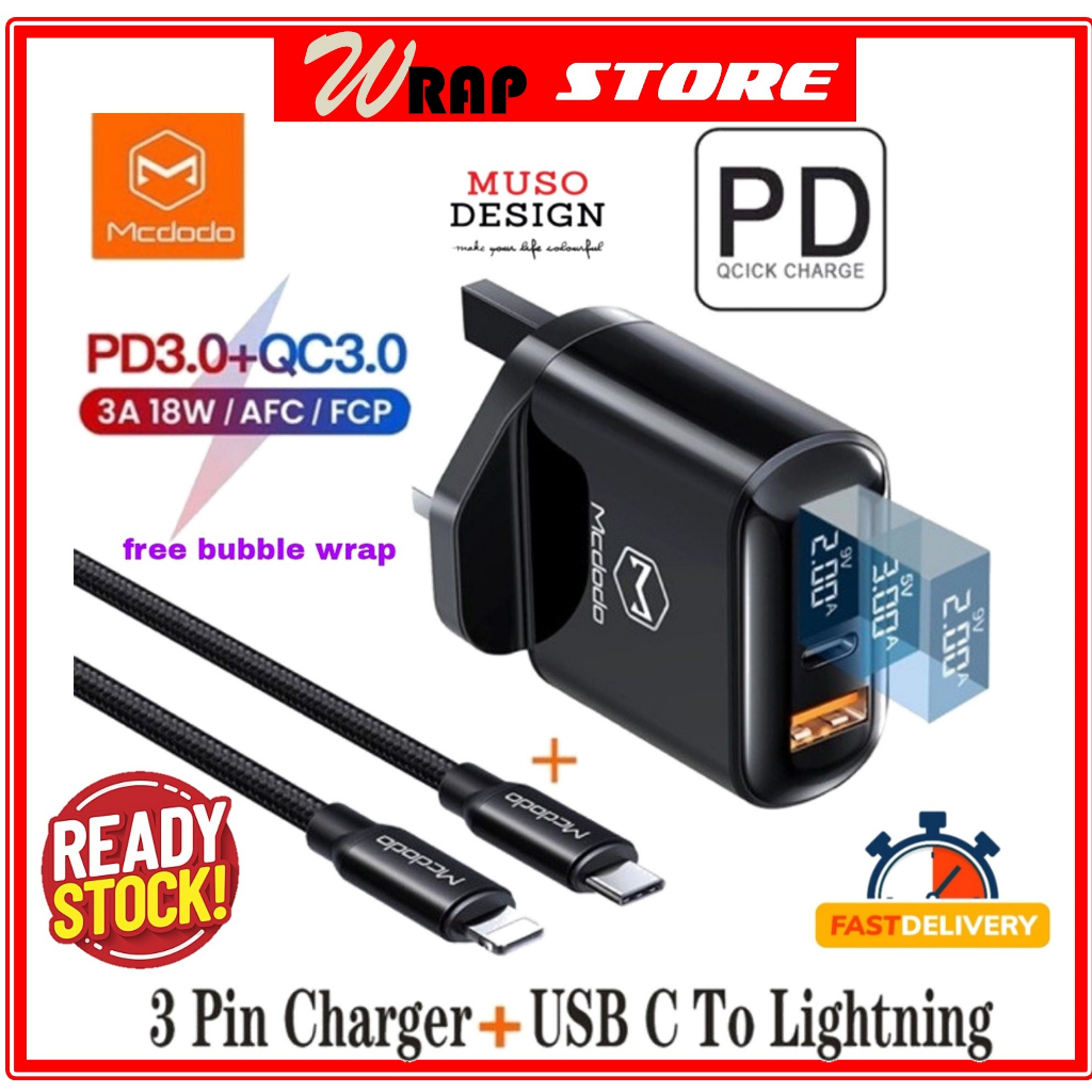Mcdodo 100% Original 20W PD+QC Travel Charger with Fast Charging Type-C to Lightning Cable CH-7231