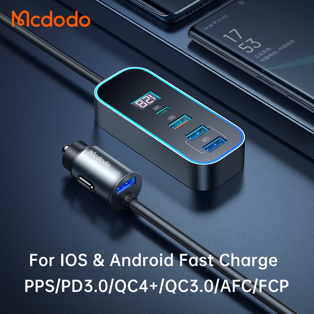 Mcdodo 107W Car Charger PD+QC 3.0 4.0 Fast Charging for iP 14 Pro Max 13 12 11 Xiaomi Samsung 1.5M Extension Cable