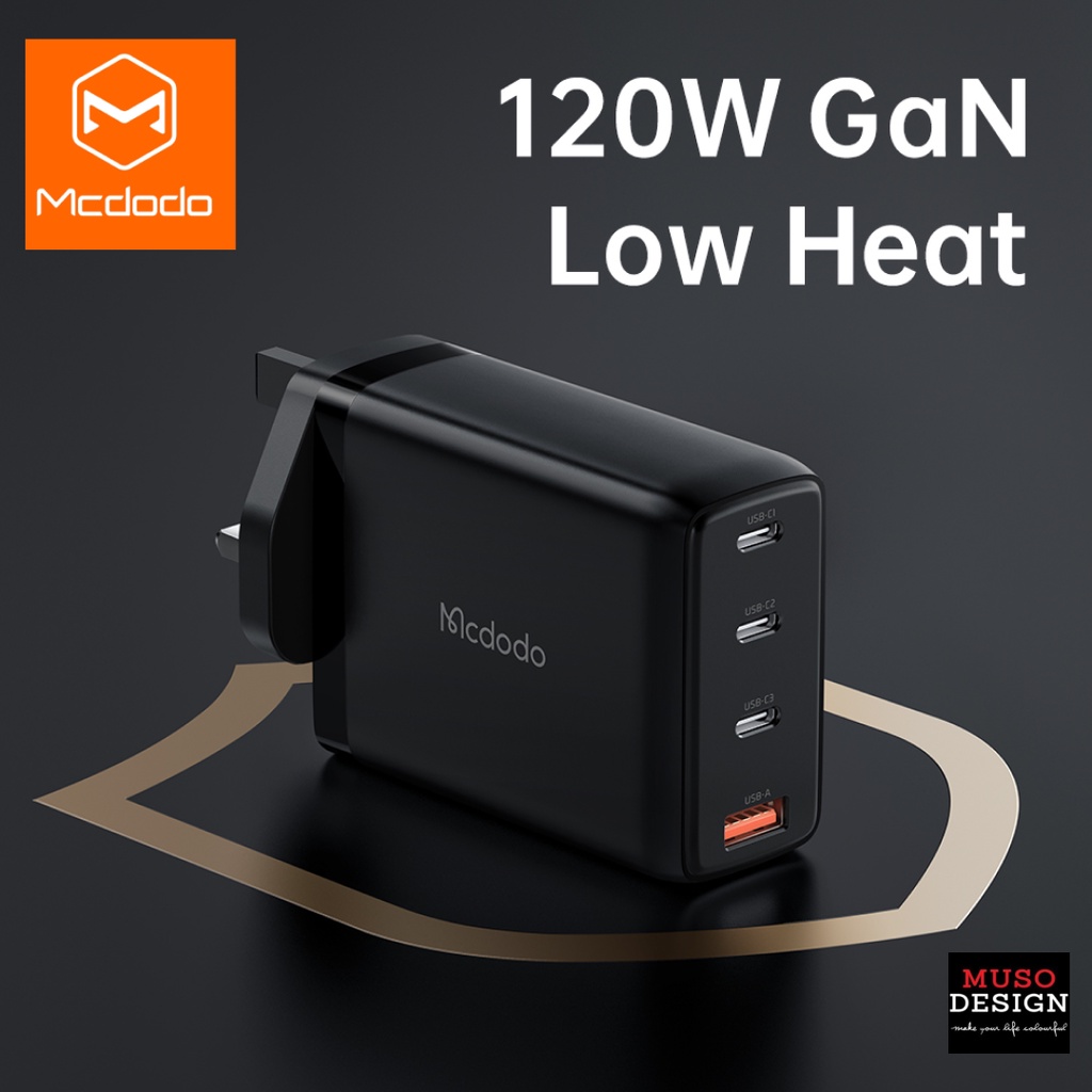 Mcdodo Original PD Usb Charger Gan Adapter 120W Fast Charging Usb C Kepala Charger Type C Cable Chargers Adaptor UK Plug