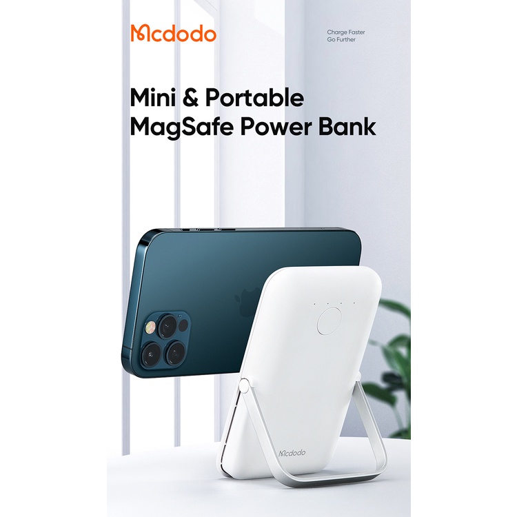 Mcdodo Powerbank Original 2In1 Wire & Wireless Magnetic 5000mah Fast Charging Power Bank 20W PD Type C Output with stand