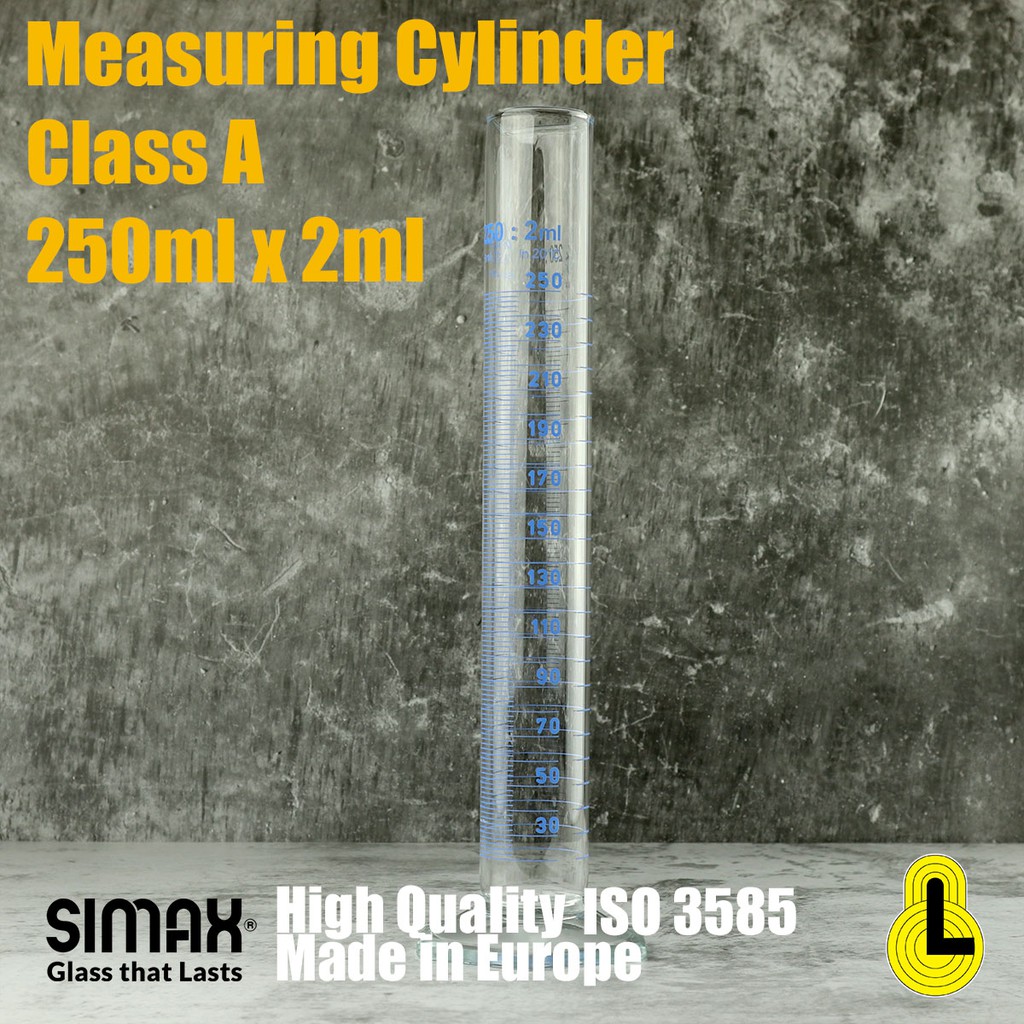 Measuring Cylinder 250ml x 2ml Hexagonal Base Tall form SIMAX 1634/AM/250