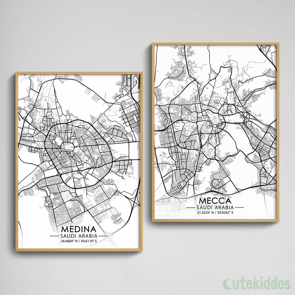 Mecca Medina Map Display Wall Decoration City Map Art Mecca Medina Wall Decor Hiasan Dinding Ruang Tamu