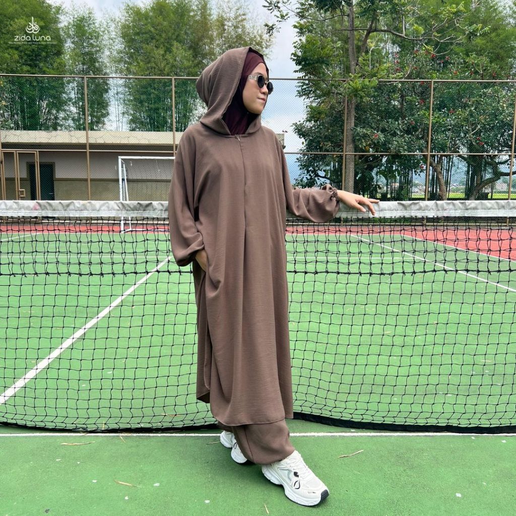 Mecca sporty hoodie set Muslim Women's Sportswear set Crinkle Material/ Sporty Tunic Sirwal/ Sports Hijab