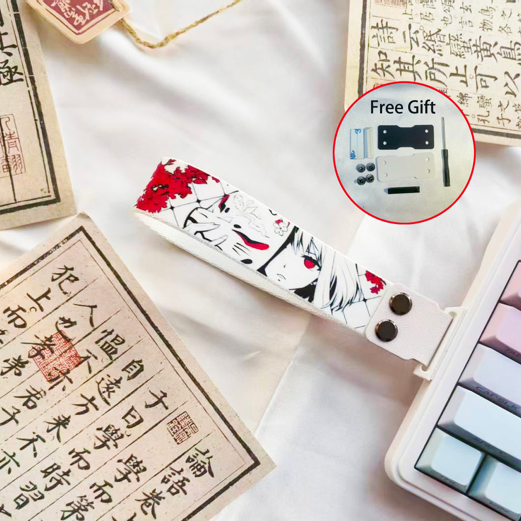 Mechanical Keyboard Anime Ribbon Strap for Wooting 60HE ATK68 Nylon PU Strap with 3M Tape & Screws