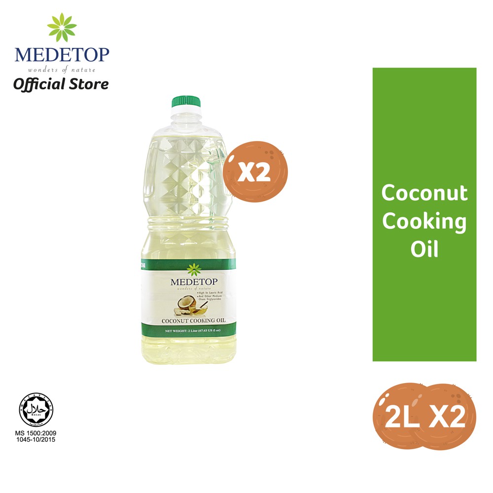 Medetop Coconut Cooking Oil 2L x 2 [Exp: 10/25], Medetop Minyak Masak Kelapa 2L x 2